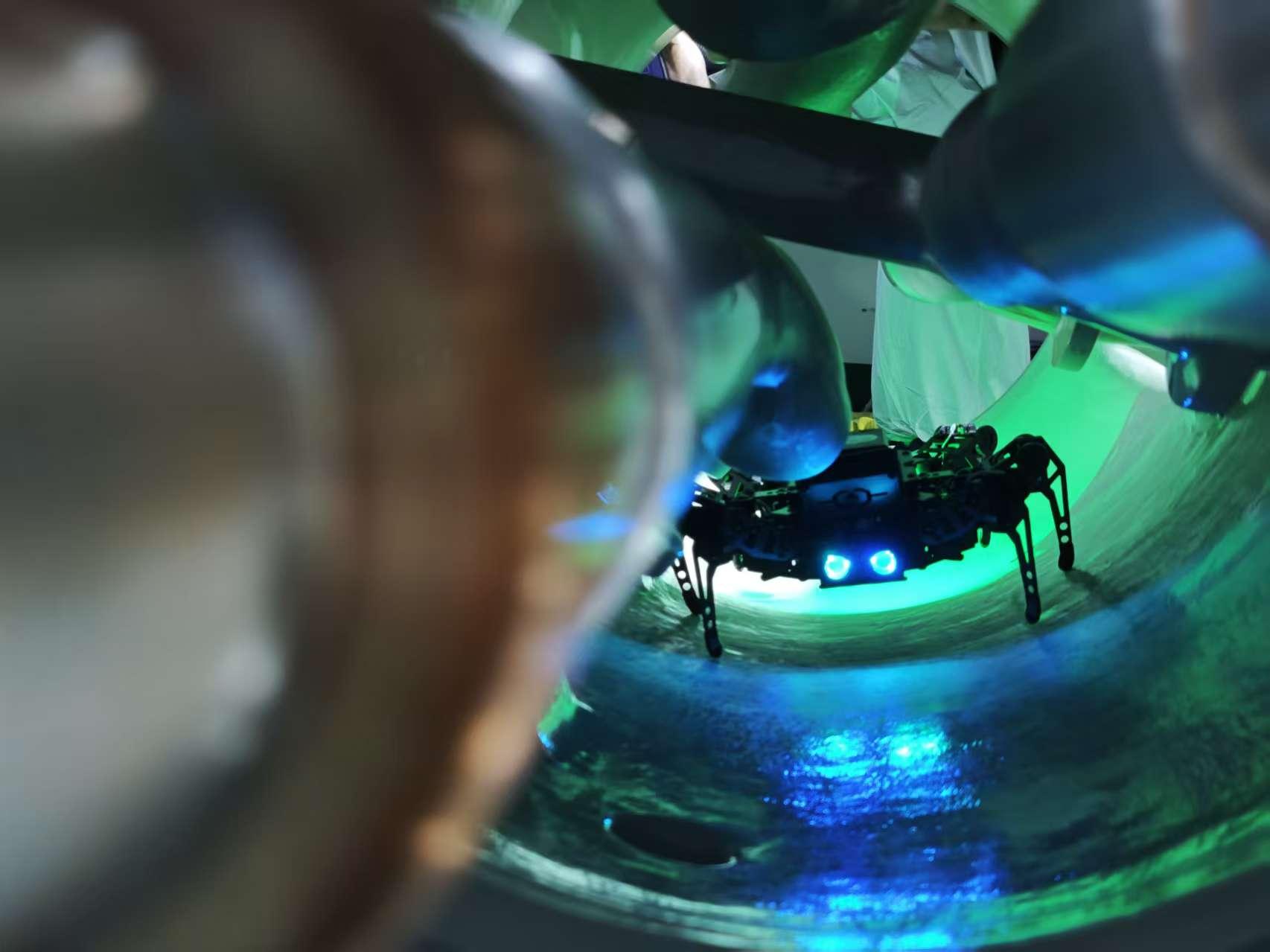 “密闭空间作业还存在窒息等安全风险,检修效率与安全保障难以兼顾。”国网杭州供电公司变电检修中心内检机器人研究人员洪涵韬解释道。该公司自主研发的六足内检机器人,凭借紧凑的机身可轻松适配不同规格的GIS管道,六足行走结构能灵活应对内部复杂环境,自主深入母线筒完成巡检,搭载的高清摄像与智能传感模块可实时回传360度无死角影像,连支撑件底部、管道三角区等隐蔽部位都能清晰呈现,助力精准研判细微缺陷。