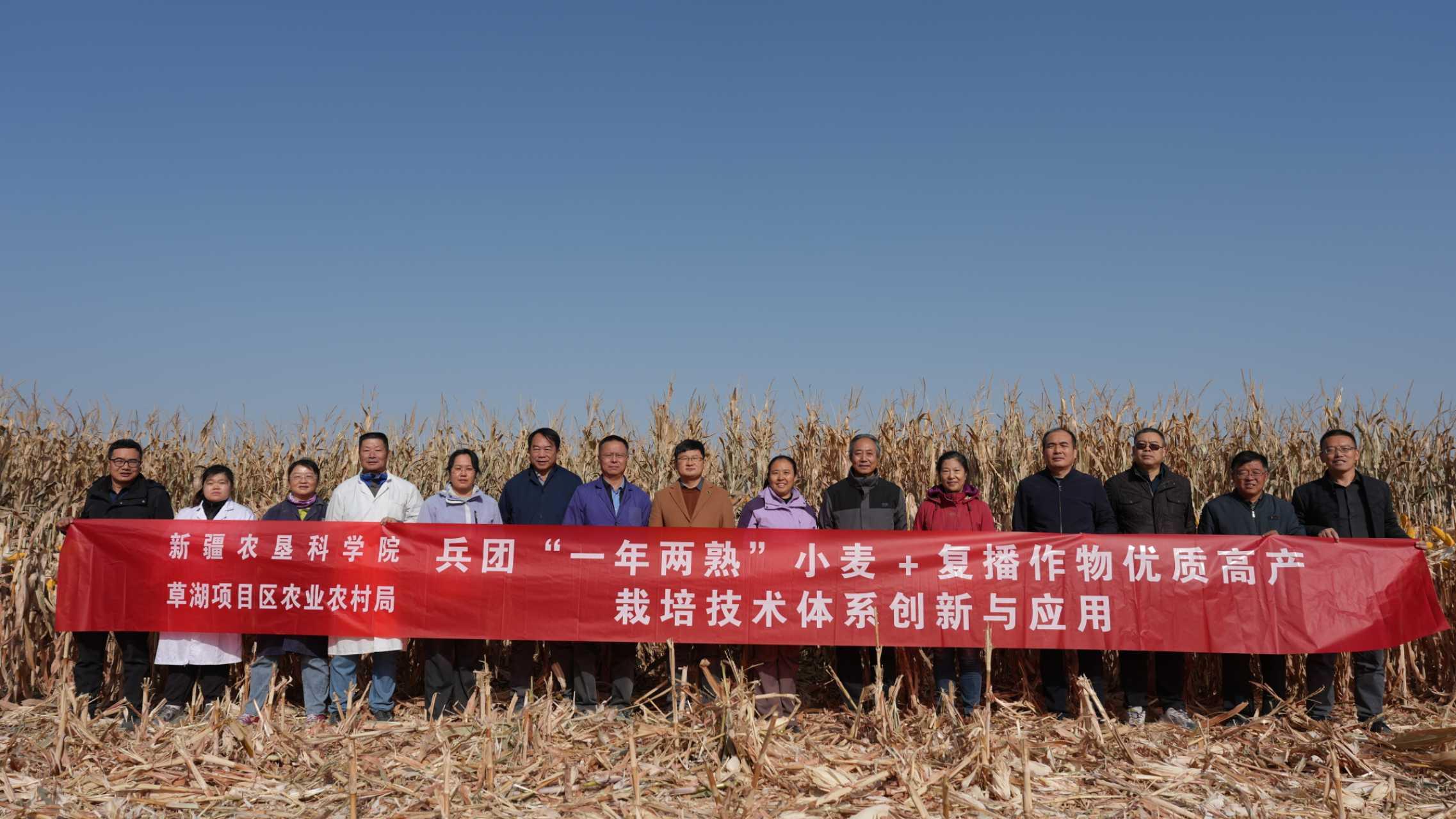 在冬小麦和复播玉米关键节点,新疆农垦科学院多次召开现场会指导农户科学种植,为高产奠定基础。