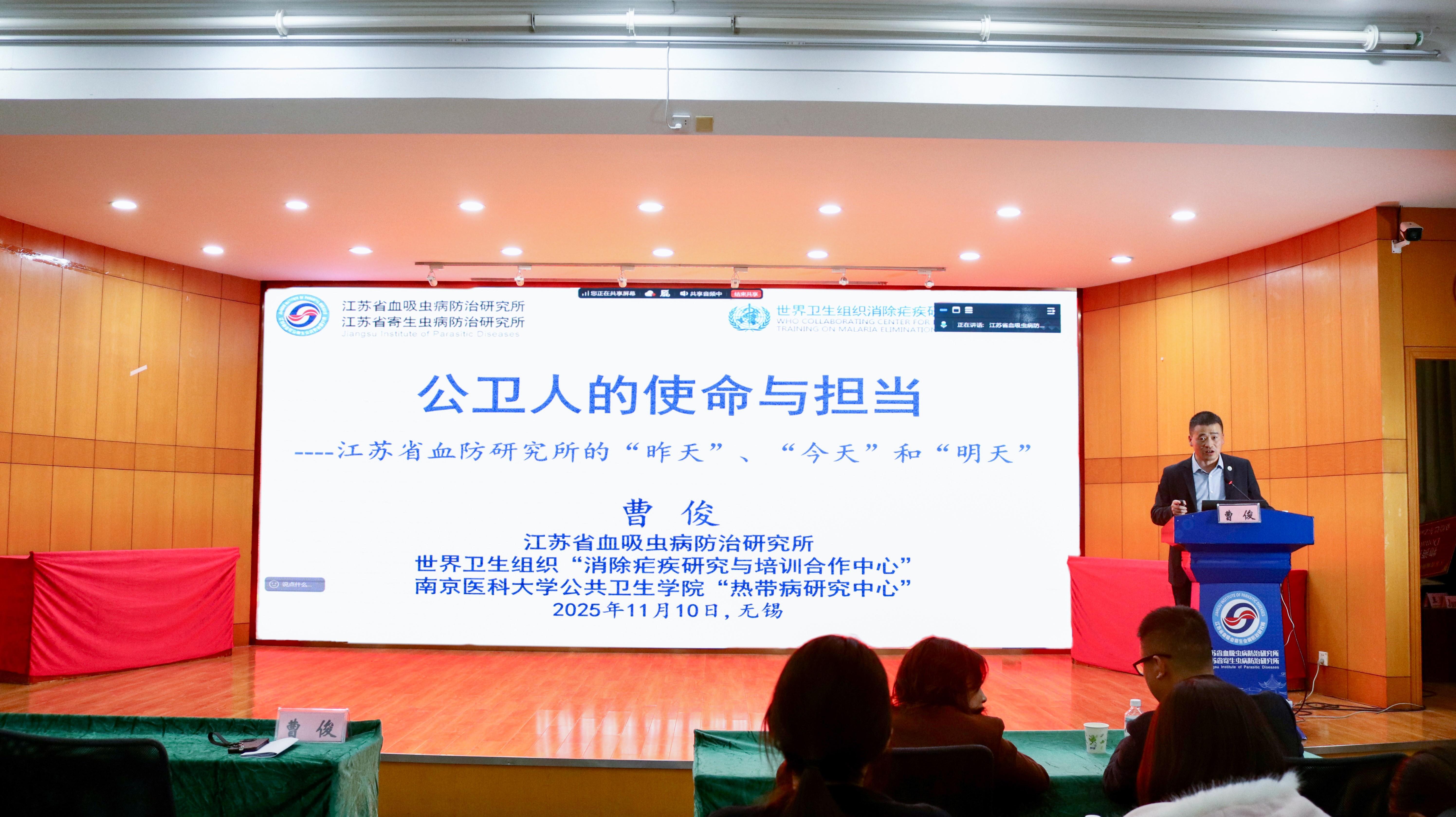 江苏省血吸虫病防治研究所所长曹俊以该所的“昨天、今天、明天”为主线,深情讲述了建所初期老一辈专家学者白手起家、扎根一线的感人事迹。随后,他介绍了江苏省血吸虫病防治研究所在疾病防控“走在前列”、科学研究“争做示范”、国际合作“争当表率”的生动实践。特别是深度参与“一带一路”卫生合作,积极支持非洲疾控体系建设,中国公卫人正以坚实行动践行“人类卫生健康共同体”理念,把责任担当书写于全球公共卫生治理的舞台,奋力开创以中国智慧赋能全球健康的新篇章。