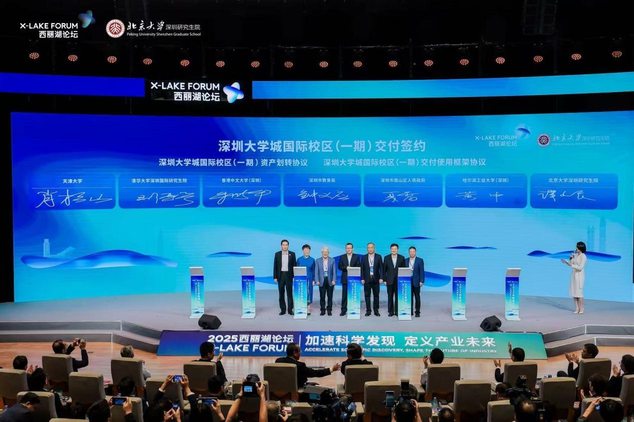 当日,国家知识产权局与北京大学共建的国际知识产权学院成立,北京大学科学智能学院“博雅AI4S拔尖人才计划”本-硕-博贯通制项目启动,深圳大学城国际校区(一期)交付签约仪式同步举行。
