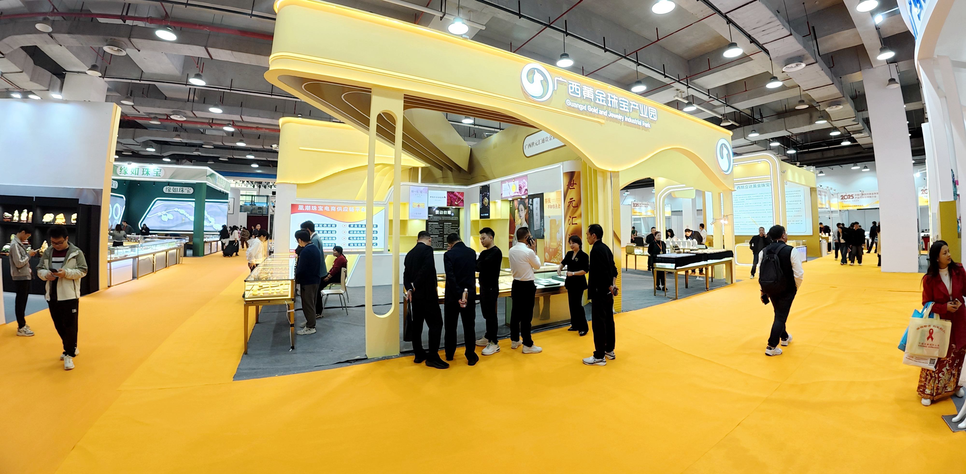 走进品牌中心展厅,金光璀璨的项链、精巧别致的黄金饰品、造型各异的摆件令人目不暇接。在广西黄金珠宝产业园企业的“金绣球”系列首饰展位前,围了不少好奇的观众。工作人员耐心介绍,设计灵感来源于瑶族绣球,将传统元素与现代工艺完美结合。“我们把民族文化和时尚潮流融合,很受年轻人欢迎。”展位负责人的语气中带着自豪。
