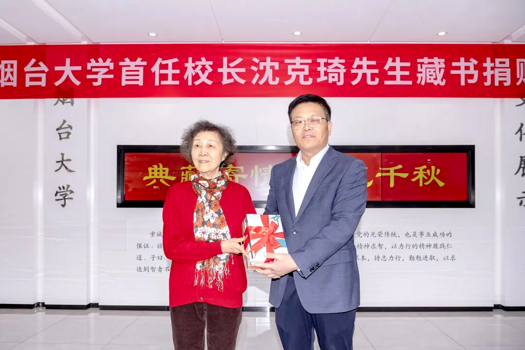 仪式上,沈正华将寄托着父亲对物理学的毕生热爱和对烟台大学深深眷恋的藏书交到卢国强手中,卢国强代表烟台大学全体师生、校友,将承载着全体烟大人对老校长沈克琦先生永远的铭记与崇敬,以及对沈正华女士无私捐赠致以衷心感谢的证书交到沈正华手中。