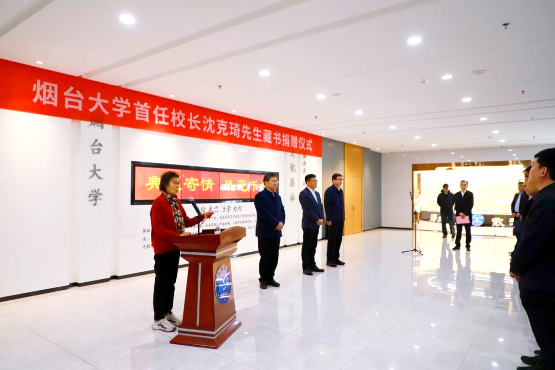“父亲始终牵挂烟台大学的发展,牵挂青年学子的成长,将这些书籍捐赠给烟园,既是完成父亲的心愿,也希望能为学子们搭建更广阔的知识桥梁。”沈正华深情回忆了父亲治学育人的一生以及与烟台大学的深厚情缘。她谈到,沈先生一生酷爱读书、潜心治学,这些藏书是先生深耕学术、躬耕教育的见证,更是他精神品格的具象化体现。