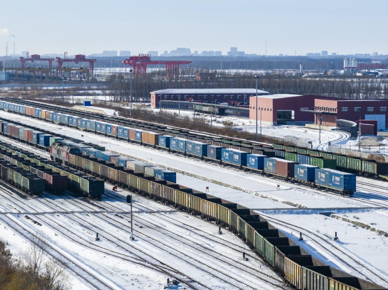 同江铁路口岸于2022年11月开通运营,2023年7月开行首趟去程中欧班列,并于同年10月实现班列双向贯通。目前,经同江铁路口岸的中欧班列已通达欧洲14个国家,连接国内60多座城市,中欧班列主要集结来自长沙、沈阳、长春、哈尔滨、上海等城市及周边地区的货源,货物品类由开通初期的煤炭、铁精矿拓展到汽车配件、铝锭、食品、铜精矿等十几种品类,货物通达俄罗斯等欧洲国家。