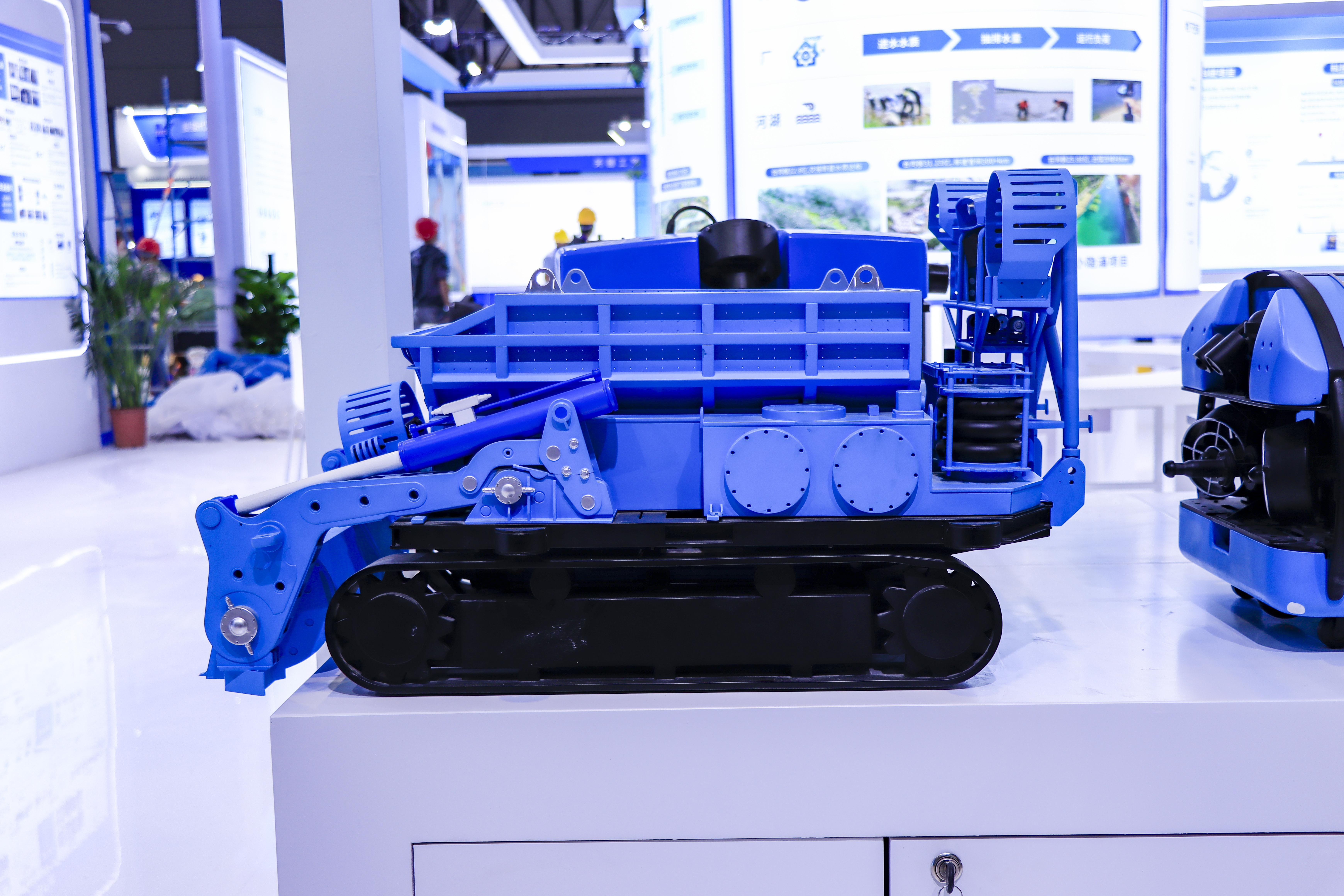 水务科技展区的“智慧机器人军团”,覆盖测绘、检测、清淤、修复的全流程智能装备。其中,全球首台深隧巡检机器人能在高流速、高水压环境下完成检测修复,中高水位检测机器人实现逆流稳定行走,装载式暗涵清淤机器人则以“铲挖滤储运”一体化设计将出泥含水率降至60%。配套展出的八大工艺包与四大产品线,已在武汉大东湖深隧等重大工程中落地,构建起“源头—过程—末端”全流程治理体系。