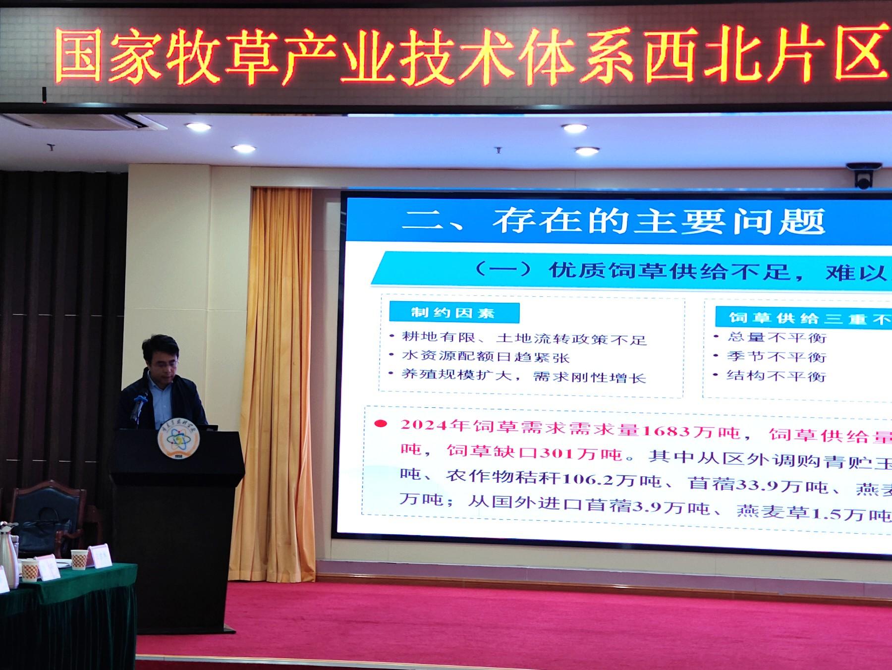 “陕西草牧业优质饲草供给缺口加大,粗略计算,2024年全省各类饲草缺口530万吨,优质饲草料自给率仅为40%。”“甘肃主要存在的问题是盐碱地改良技术集成不足,种植效益下降,草业信息服务能力弱。”“南疆90%的饲草依赖北疆及疆外调入,运输成本占终端价的10%—30%;北疆虽然自供能力较强,但龙头企业需提升加工水平,释放增值空间。”参会人员围绕西北区域饲草产业高质量发展问题、需求和共性任务展开交流。