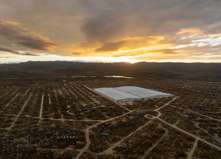 “拉索”装置离机场约10公里,放眼望去,古冰川地貌的海子山延绵不断,荒芜辽阔、巨石无数,大小湖泊如星辰落地。