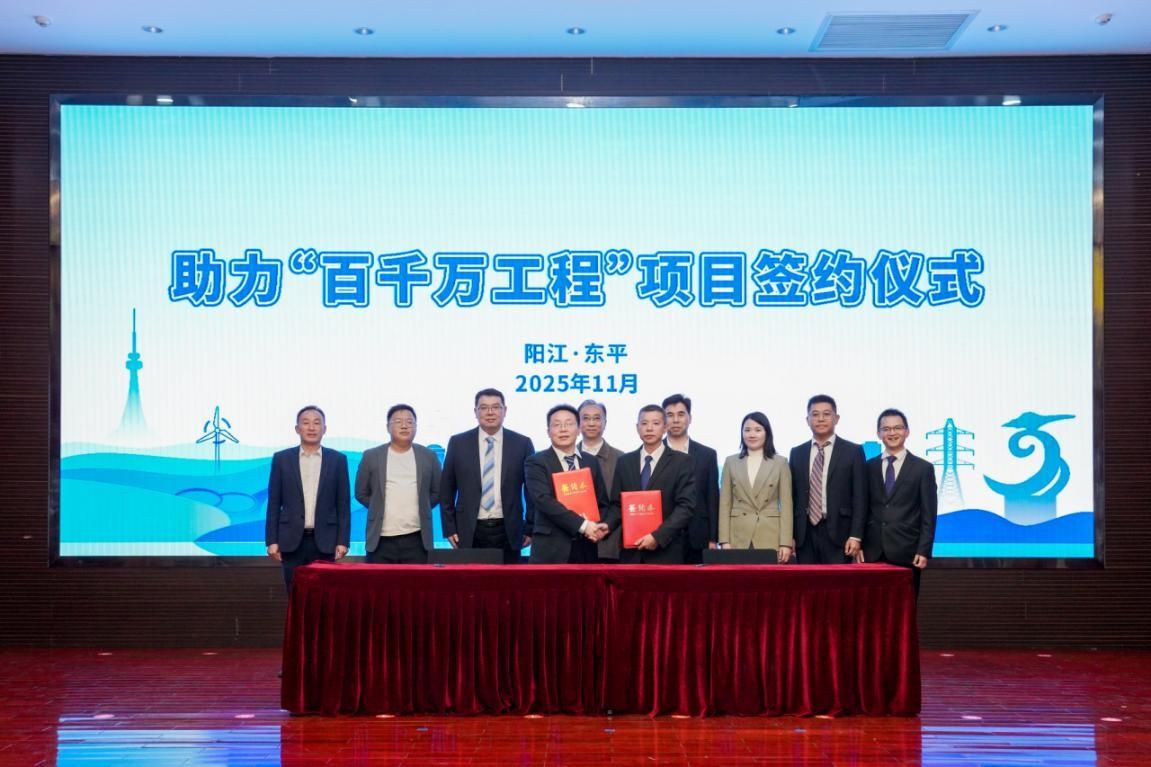 仪式现场,中广核在阳产业公司与4家村集体企业签约助力“百千万工程”产业项目,涵盖保洁、消费帮扶等业务,总金额超1500万元,以产业赋能带动乡村振兴。
