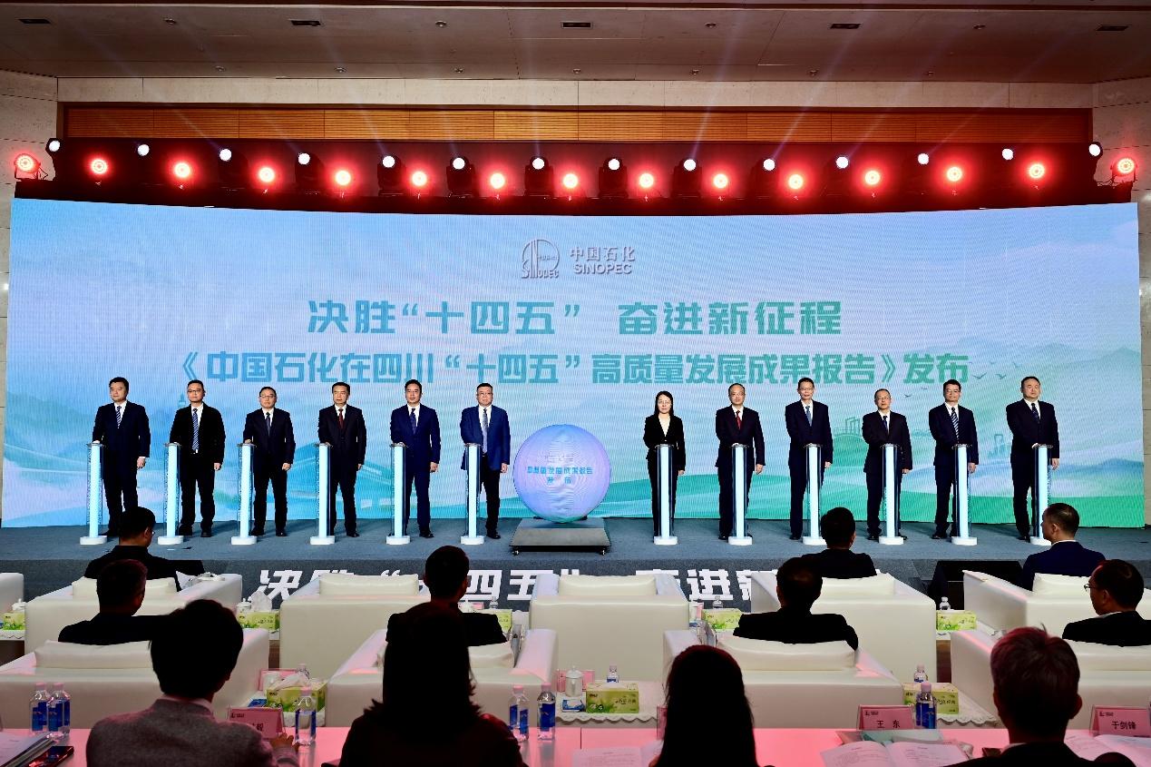 11月21日,中国石化10家驻川企业在成都联合举办以“决胜‘十四五’ 奋进新征程”为主题的高质量发展成果发布会,集中展示“十四五”期间中国石化驻川企业在端牢能源饭碗、科技创新驱动、践行绿色低碳、服务美好生活等方面的生动实践和发展成就。