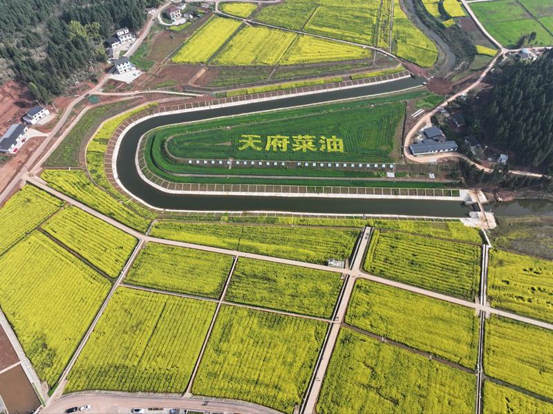 在粮食安全层面,蓬安通过“统一品种、统一采供、统一栽培、统一防治、统一收储”的“五统一”模式,推动粮油复合种植,2025年带动全县小春粮油总产超11万吨,实现亩均粮食增产15%、节本增收400余元,实现“良田粮用”;在农民增收层面,土地流转率超81%,15个经营主体参与园区经营,常年务工人数超300人,村集体经济通过土地托管、入股分红实现增收;在产业融合层面,睦坝镇依托万亩高标准农田举办油菜花赏花季,打造“赏花+娱乐+美食”消费场景,推动农旅融合,撬动乡村经济高质量发展。