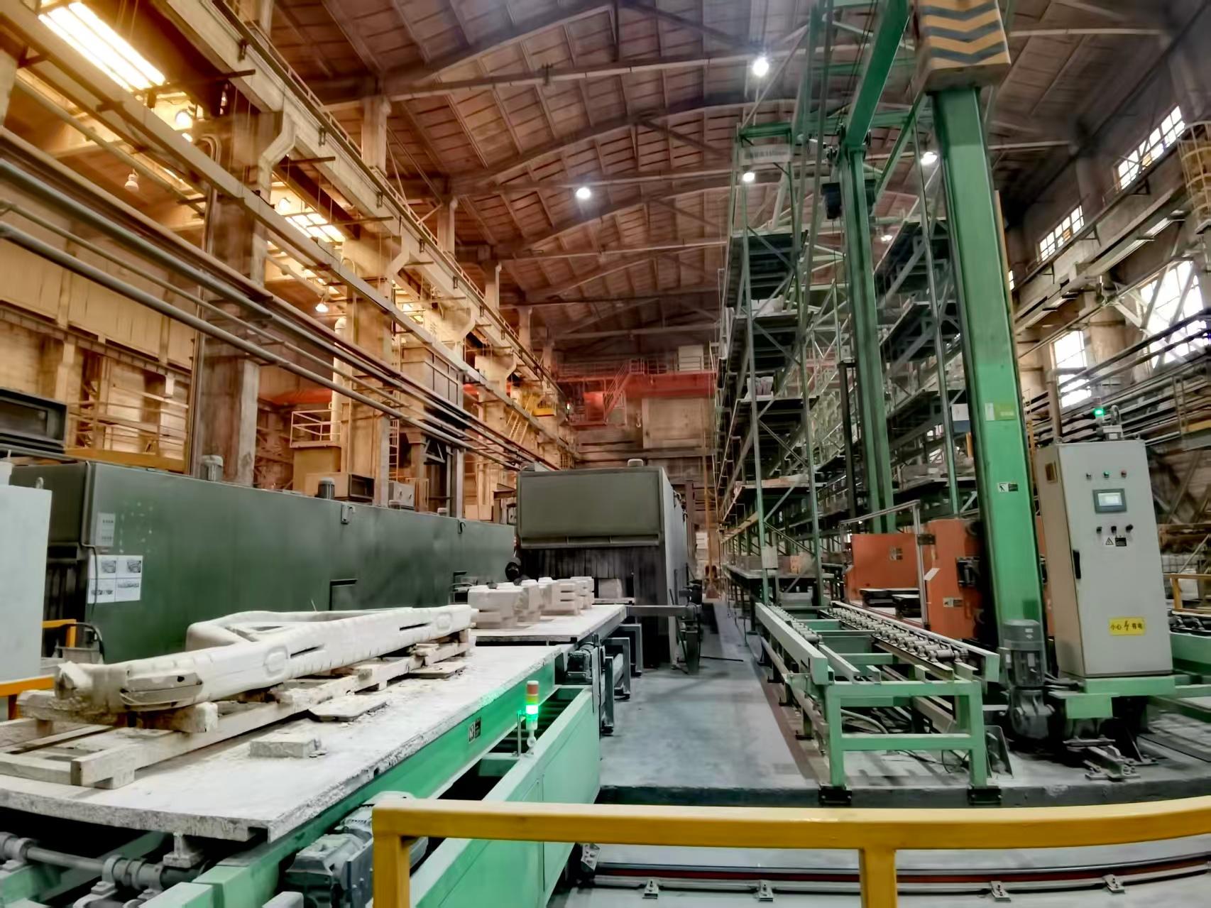 走进铸锻分厂砂芯生产现场,一条自动化产线映入眼帘,只见堆垛机、各辊道及穿梭车正在相互协作完成多品种、多规格砂芯出入库调运。现场矗立的数字化大屏幕呈现着砂芯储运的动态数据并实时监测设备工作状态。而在现场看不见人员操作,从调度指令下达到流水化作业,整套流程全部由智能化系统控制完成。
