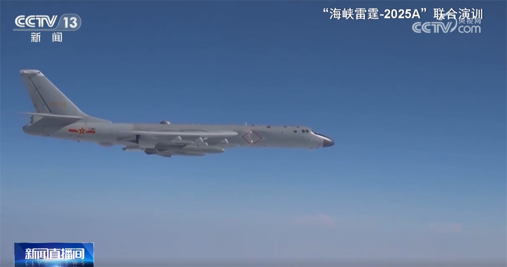 挂载实弹的轰6-K战机编队,经巴士海峡前出远海,模拟发射多枚精确制导弹药。