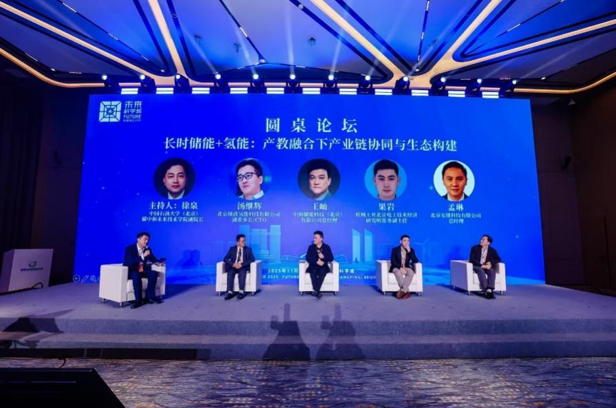 技术创新是本次大会的核心亮点。中国科学院院士、北京大学纳米科学与技术研究中心主任、北京石墨烯研究院院长刘忠范介绍,作为电热转换领域的杀手锏材料,3000型蒙烯玻纤产品实现了工业级碳源替代,产品一致性提高了12%,已广泛应用于无人机、风电叶片除冰、锂电烘干等多个关键领域。中国科学院院士、中国石油大学(北京)重质油全国重点实验室主任徐春明介绍了储能平台石墨烯复合电池生产线、绿电—绿氢—合成氨过程耦合等技术突破,基于碳布电极的500kW 铁铬液流电池储能模块及装备入选国家能源局能源领域首台(套)重大技术装备名单,引领低成本长时储能发展。华北电力大学能源电力创新研究院执行院长、国家储能技术产教融合创新平台(华北电力大学)常务副主任徐超介绍,华北电力大学国家储能技术产教融合创新平台目前已经建成电堆全堆测试台、电化学储能材料与器件实验室、氢氨燃烧实验室等,下一步将形成“源网荷储”一体化工程试验系统,带动相关产业产值超过10亿元。天津津通华电气集团有限公司介绍了新能源风光充结合储能的全方位系统性应用,中国石化润滑油有限公司分享了石化行业技术在新型储能上中下游的全要素解决方案。圆桌会议则针对产教融合下长时储能+氢能产业链协同与生态构建的研讨,为产业跨界融合与可持续发展凝聚了智慧。