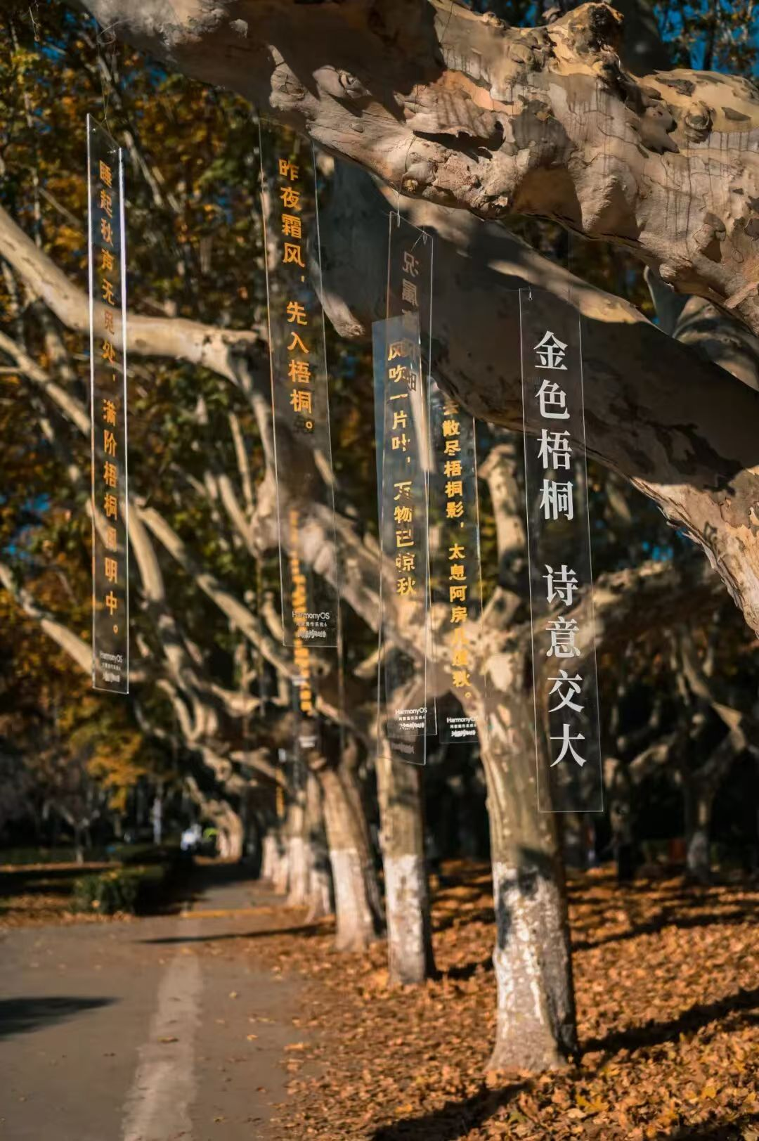 记者漫步在绵延数百米的梧桐大道上,看到落叶翩跹、光影流转。装点着“梧桐诗语”的诗句、落叶留言板上的心语与“萌趣小梧桐”旁的张张笑颜,将学校装扮成可观赏、可互动、可珍藏的诗意空间。
