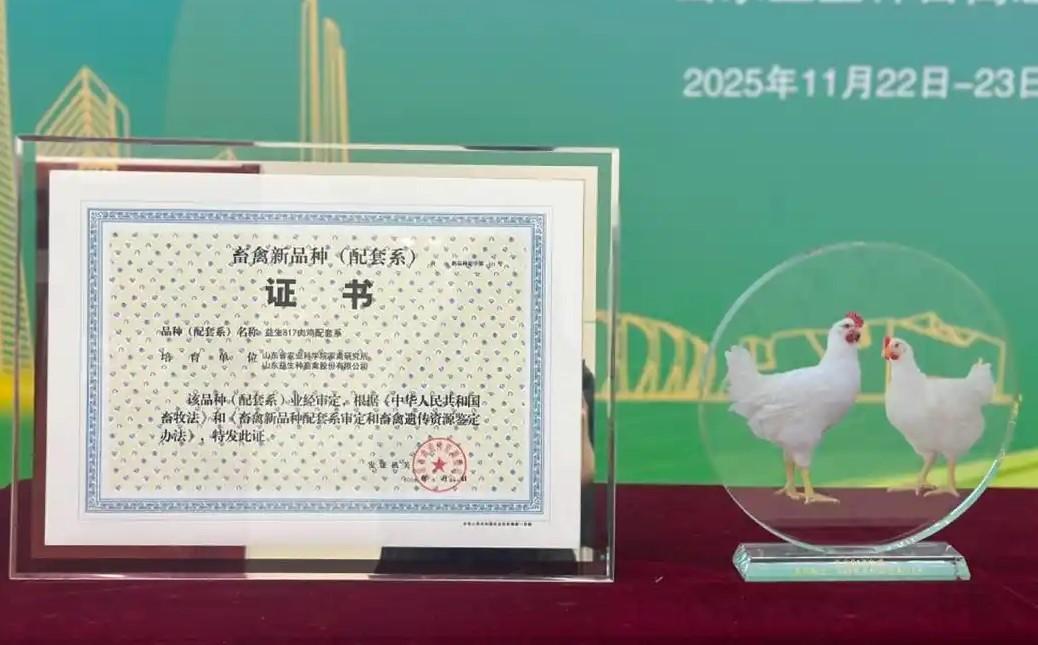 “由山东省农科院家禽研究所和山东益生种畜禽股份有限公司联合培育的‘益生817肉鸡’成功通过国家畜禽新品种配套系审定,获得国家新品种证书。”11月23日,在山东省济南市召开的“817肉鸡产业高质量发展研讨会”上,山东省农科院原党委副书记、省农业专家顾问团畜牧分团团长、省畜牧协会秘书长逯岩研究员表示,这是我国肉鸡种业发展史上的重要里程碑,标志着817肉鸡实现了从“制种技术”到“国审品种”的跨越。
