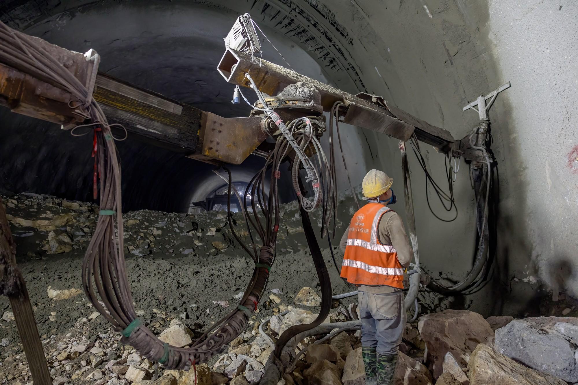 中铁十八局渝昆高铁项目部现场技术负责人宁赋岩介绍,施工中建设团队积极优化方案,设置8个通风阶段,有效解决了长距离、多工作面通风的世界性难题。同时利用瞬变电磁、长距离超前钻孔等多种先进技术手段,2次精准预测出岩溶突水突泥风险,顺利通过了1800多米的极高风险段落,平导连续3个月掘进进度超过200米,为全隧按时贯通奠定了坚实基础。
