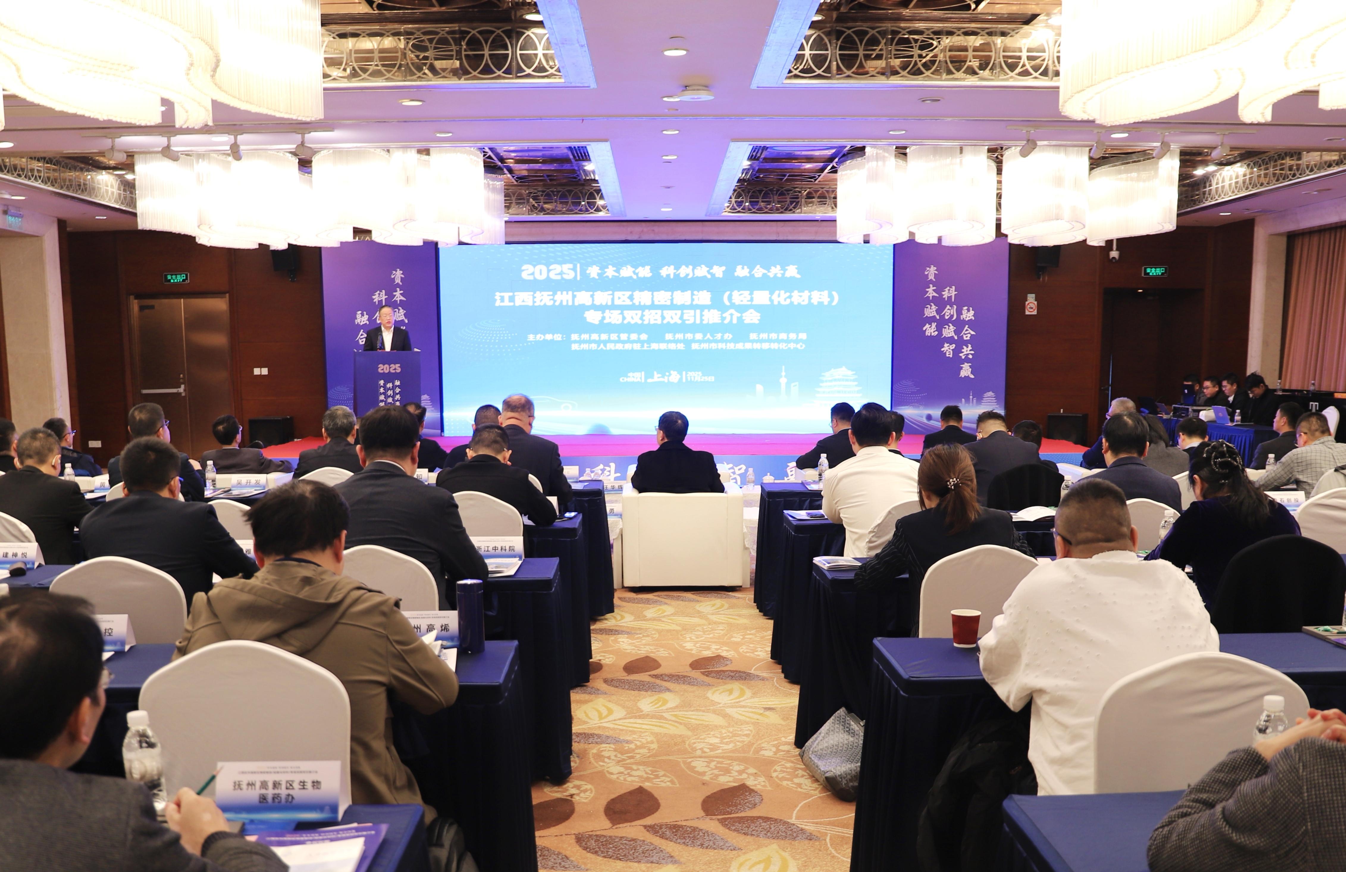11月25日,抚州高新区精密制造(轻量化材料)专场双招双引推介会在上海成功举办,为抚州新质生产力发展注入强劲动能。此次盛会以“资本赋能、科创赋智、融合共赢”为主题,汇聚100余位高校院所专家、企业高管与投资机构代表,搭建起跨区域、跨领域的创新合作桥梁。