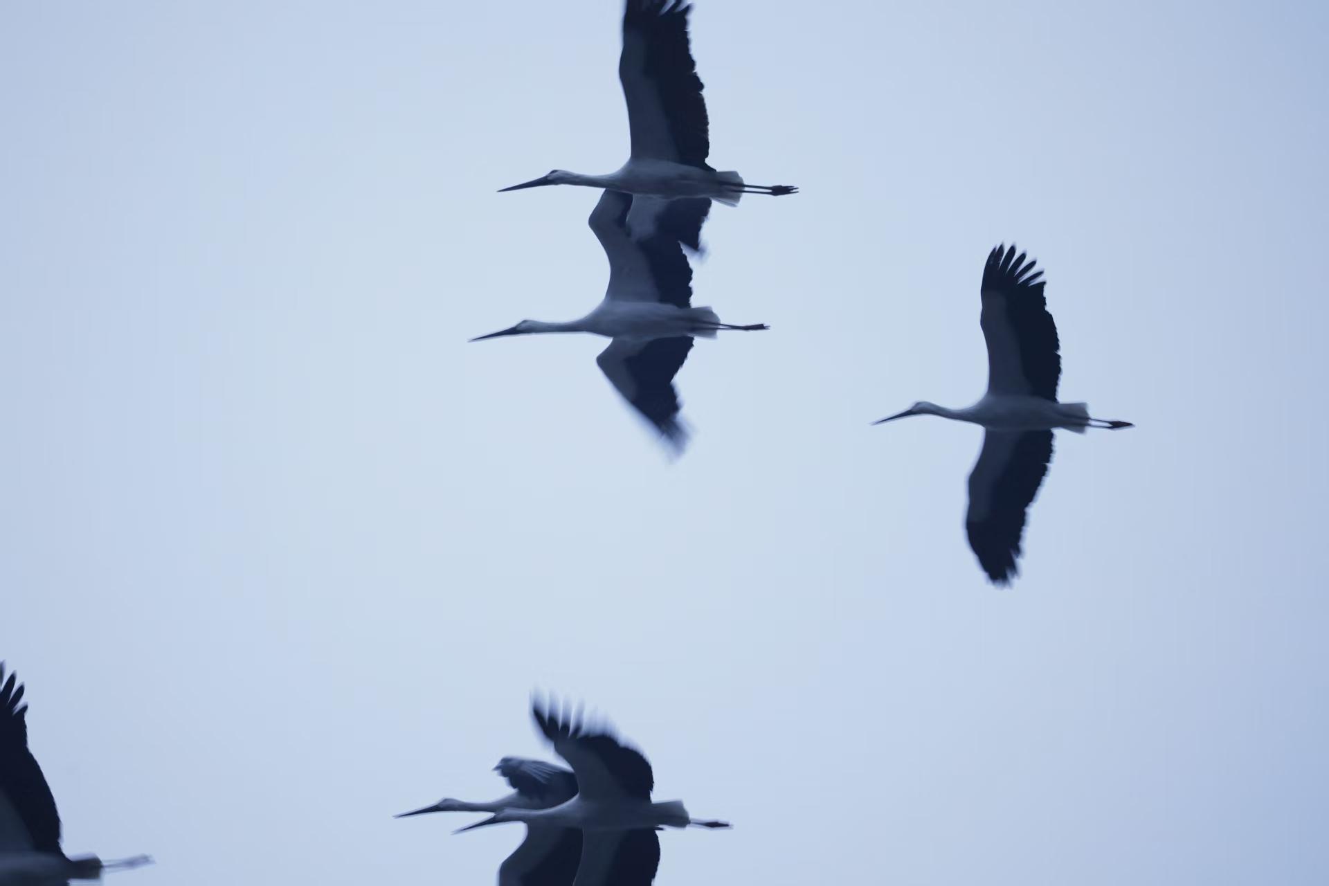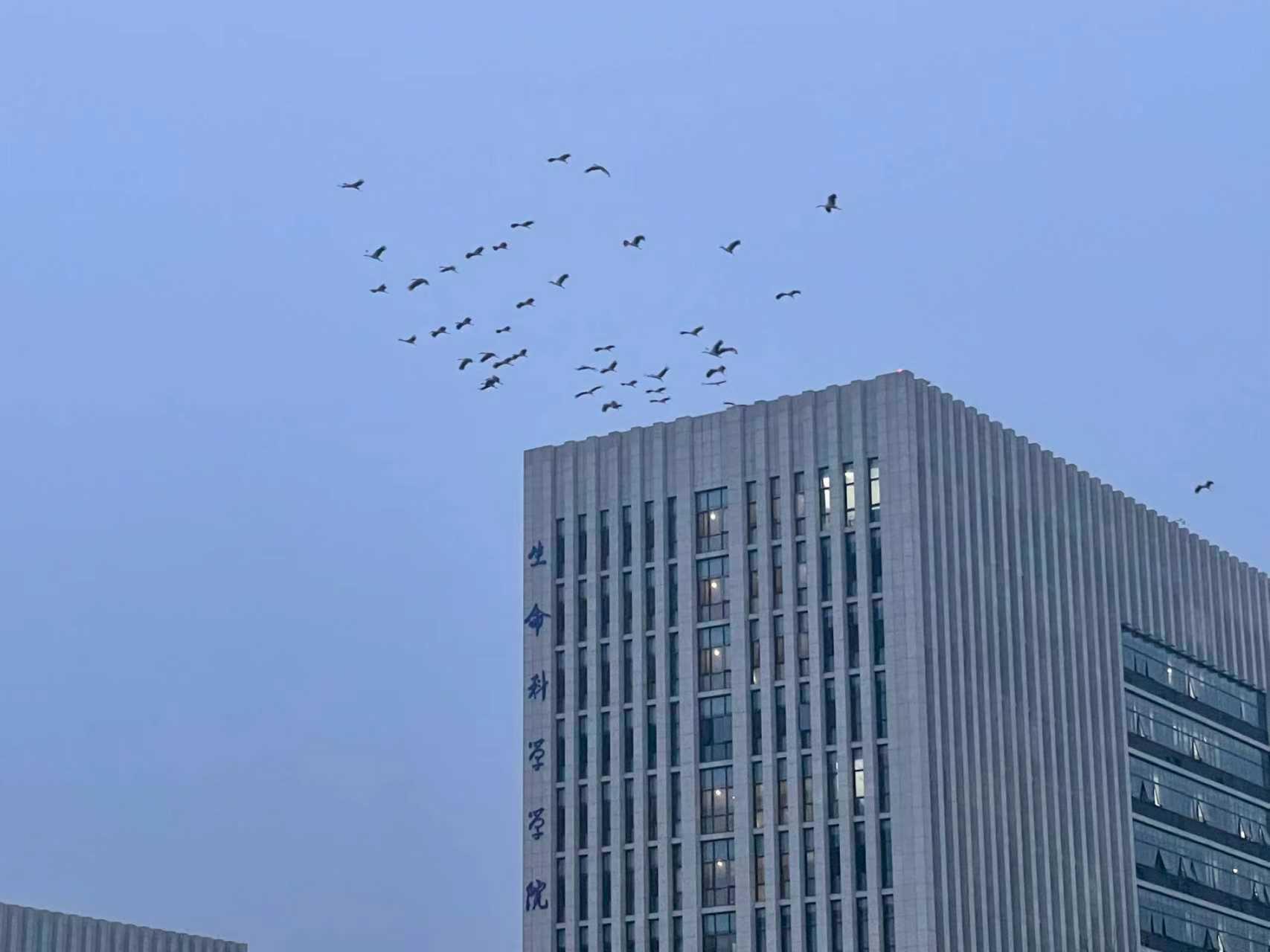 “在野外见过东方白鹳多次,但如此大规模的集群现身城市校园实属罕见。”回忆起当时的场景,陈潘仍难掩激动。抬头望去,洁白的羽翼泛着微光,47只东方白鹳组成的鸟群从东侧天际缓缓飞来,绕着清源楼划出优美弧线。作为动物学专家,他立即辨认出这群“贵客”的身份——东亚特有濒危物种,被列入IUCN(世界自然保护联盟)红色目录的东方白鹳,是对栖息环境极其挑剔的“生态考官”。