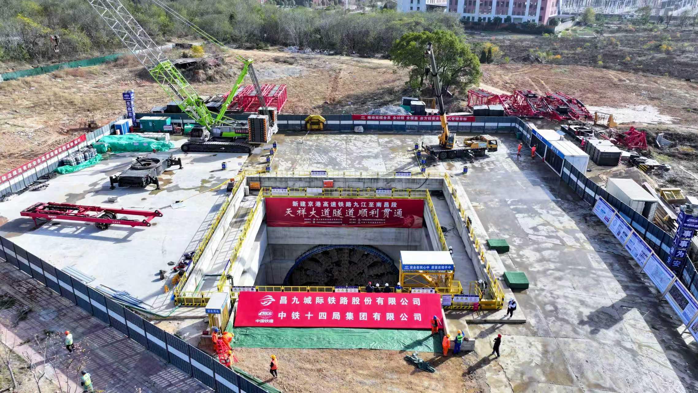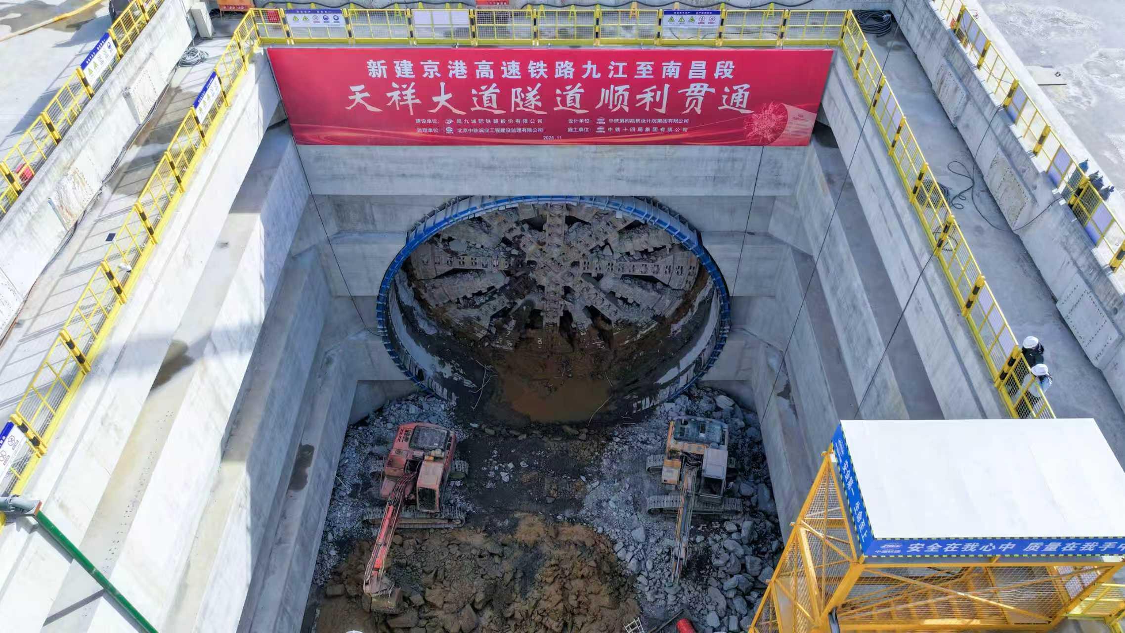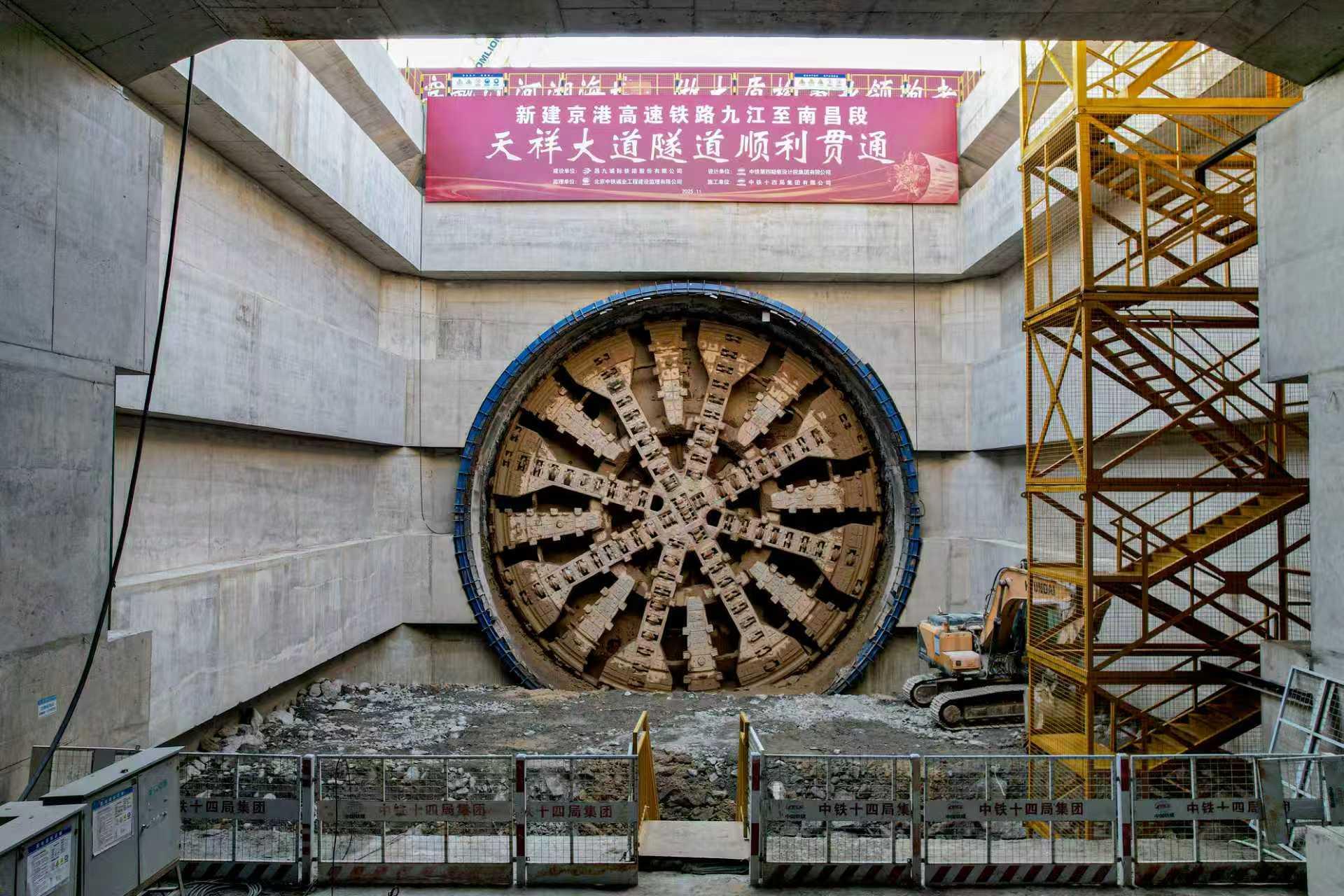 11月28日,“英雄号”盾构机从昌九高铁天祥大道隧道出口推出,标志着天祥大道隧道顺利贯通,为昌九高铁全线铺轨施工打下坚实基础。