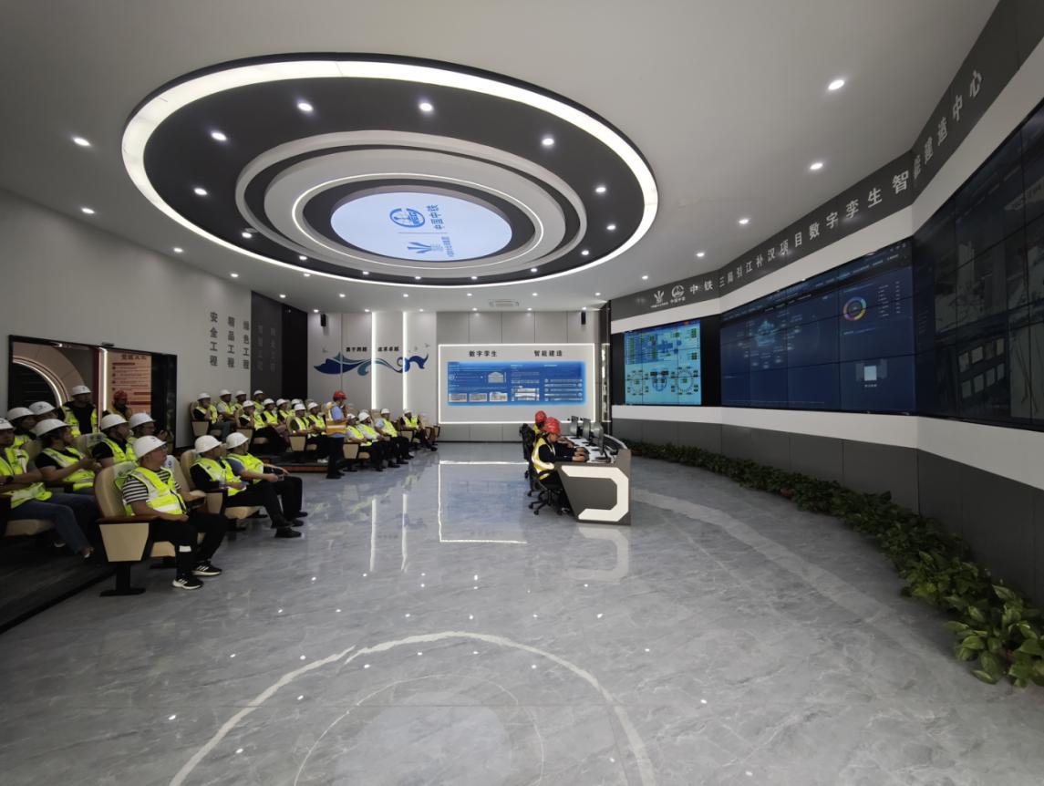 在引江补汉工程项目数字孪生智能建造中心,巨大的电子屏幕上实时显示着工程进度、设备运行、人员位置等各项数据。点开数字平台系统,隧洞立体图上闪烁的红点代表着正在作业的工人。“通过安全帽上的定位芯片,我们可以清晰掌握洞内人员分布和实时状态。”符海斌说。