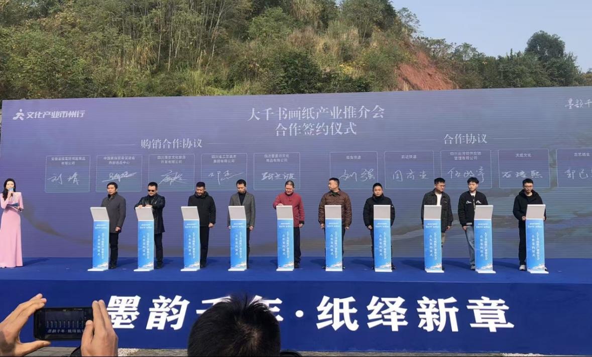 11月27日至28日,“墨韵千年 纸绎新章”大千书画纸产业推介活动在四川乐山夹江县举行。此次活动旨在进一步提升大千书画纸品牌影响力和市场竞争力,提升夹江书画纸美誉度,推动纸文化、纸产业、纸旅游“三纸”融合,助推地域特色文化产业高质量发展。