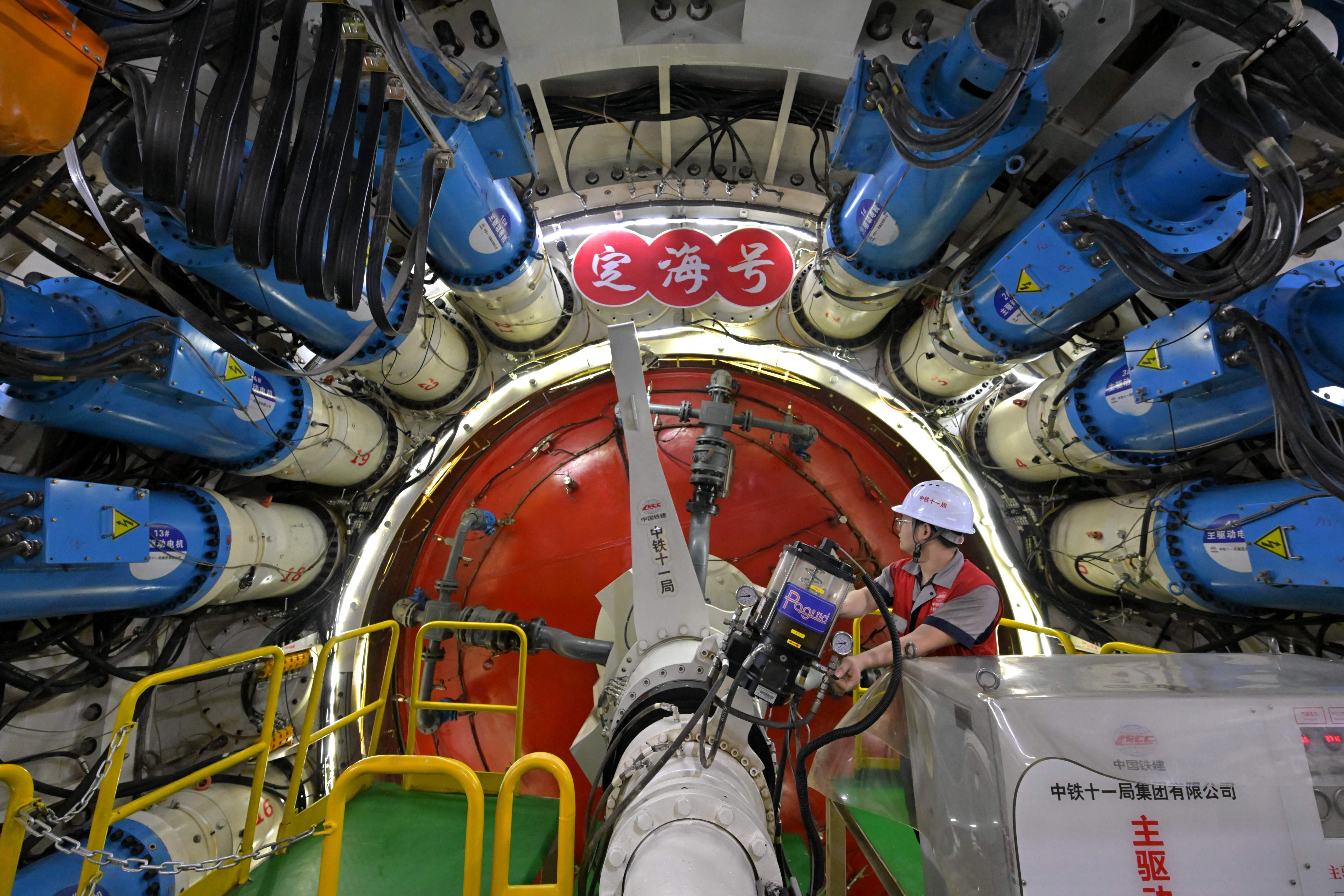 金塘海底隧道地质条件极为复杂,盾构段需穿越长距离硬岩、黏土与粉砂复合地层,施工面临高强度、高水压、高精度与高风险等多重挑战。今年7月,项目建设团队创新采用三元混合气带压换刀技术,成为国内行业首创,为盾构高效掘进提供技术保障。