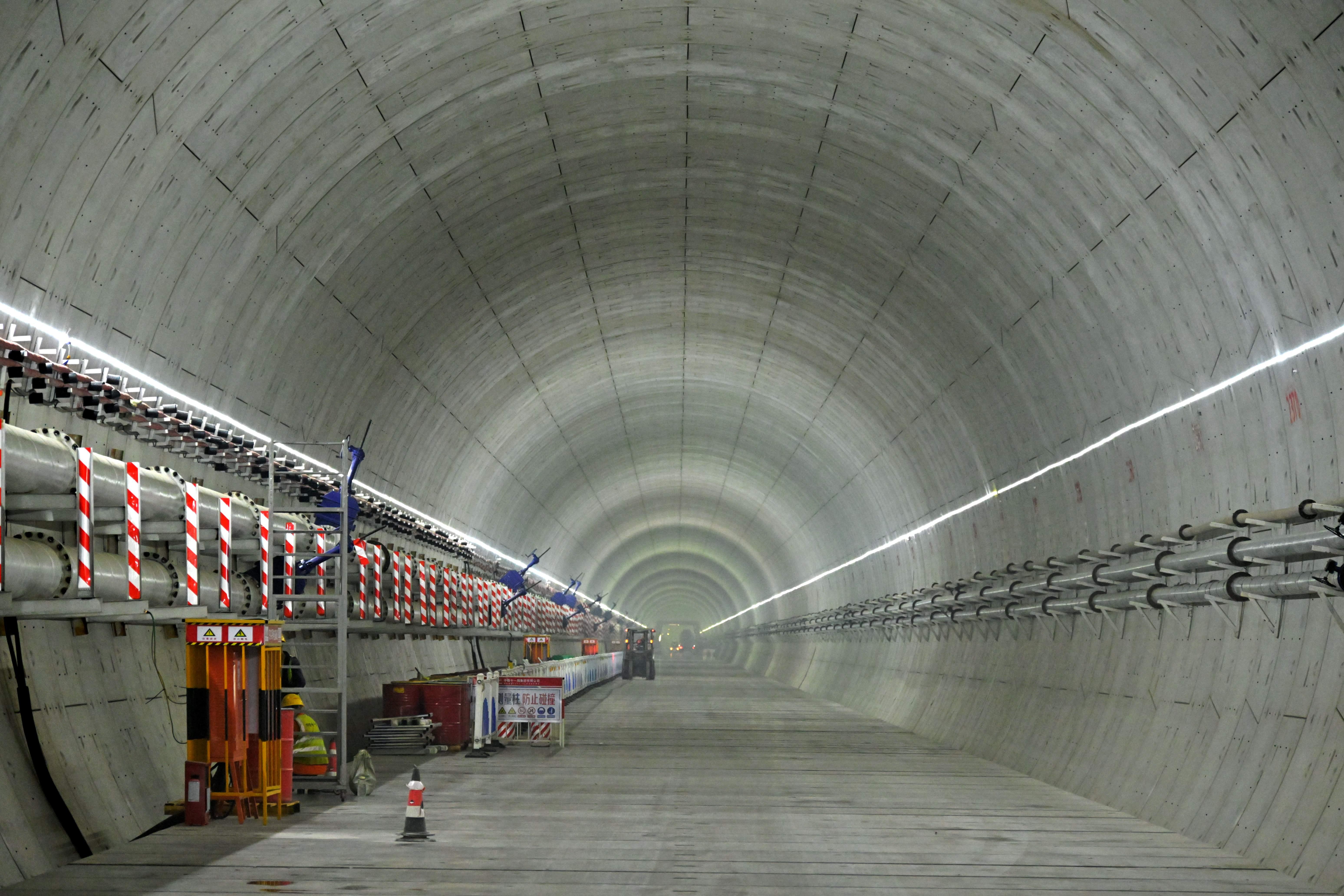 金塘海底隧道是甬舟铁路全线控制性工程,横跨宁波与舟山之间的金塘水道,全长16.18公里,其中盾构段长11.21公里。隧道采用两台大直径盾构机——“定海号”与“甬舟号”,分别从舟山、宁波两侧同步始发、相向掘进,明年将在海底复杂地层中实现高精度对接。