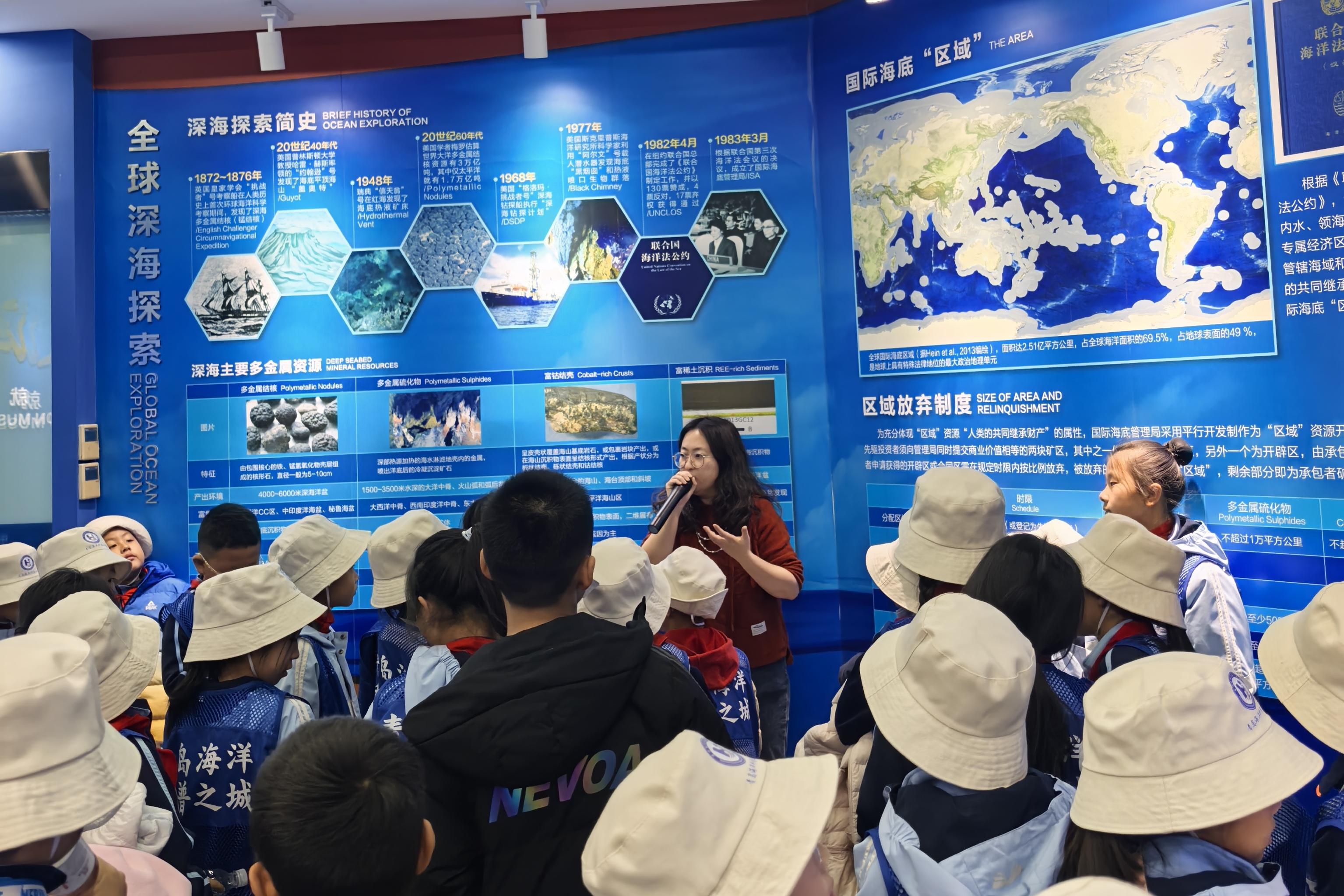 活动中,在科普老师的引导下,学生们参观了“蛟龙”号深潜器模型、观察了多金属结核样品、认识了海底大型生物标本,零距离感受深海大洋的奥秘与魅力。“原来深海如此酷炫!”通过这场沉浸式科普体验之旅,学生们有感而发。