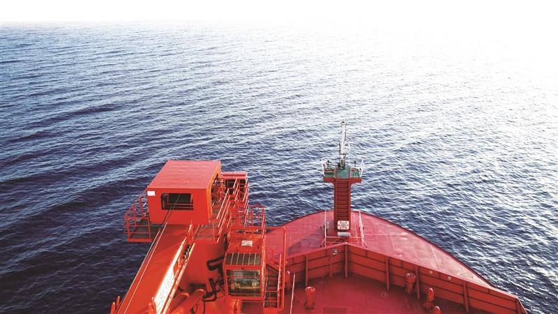 穿着短袖,站在“雪龙2”号的甲板上,海风带来几分清爽。与北半球同纬度海域相比,南半球的海洋显得更加静谧,海浪波长更长,颜色也从湛蓝渐变为深邃的靛蓝。