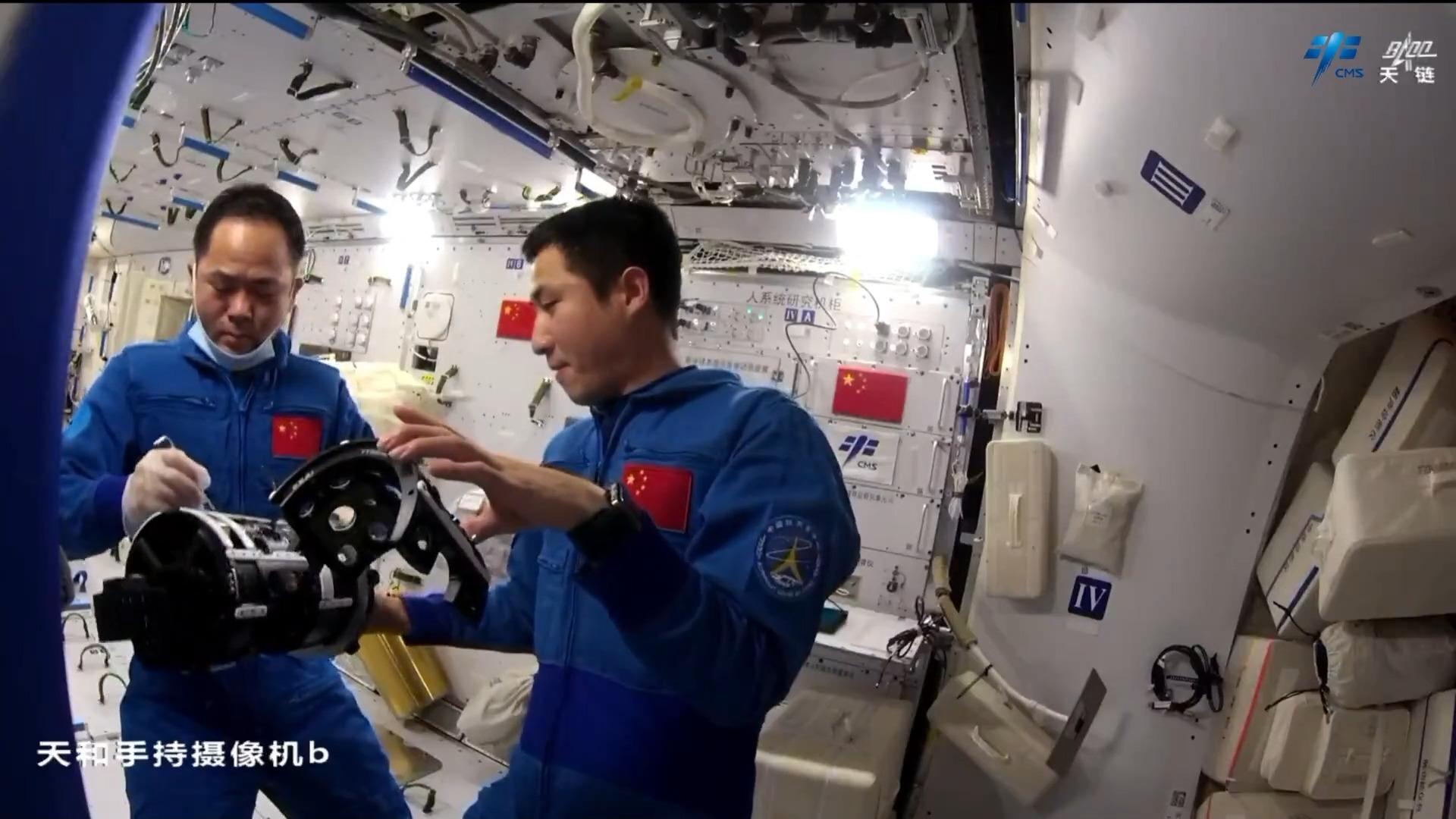 在站务管理方面,乘组开展了物资整理、舱内环境清洁等工作,持续守护太空家园的干净整洁。