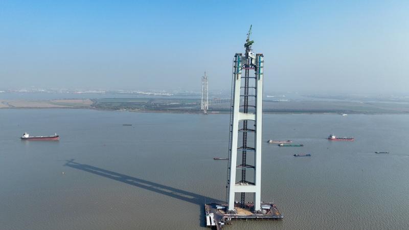 12月1日,随着南航道桥南主塔上横梁完成“云端合龙”,由江苏省交通工程建设局建设、中交二航局参建的张靖皋长江大桥南航道桥主塔全部实现封顶。至此,大桥南、北航道桥四座主塔主体结构全面完工,全桥建设正式由下部结构转入上部结构施工新阶段。