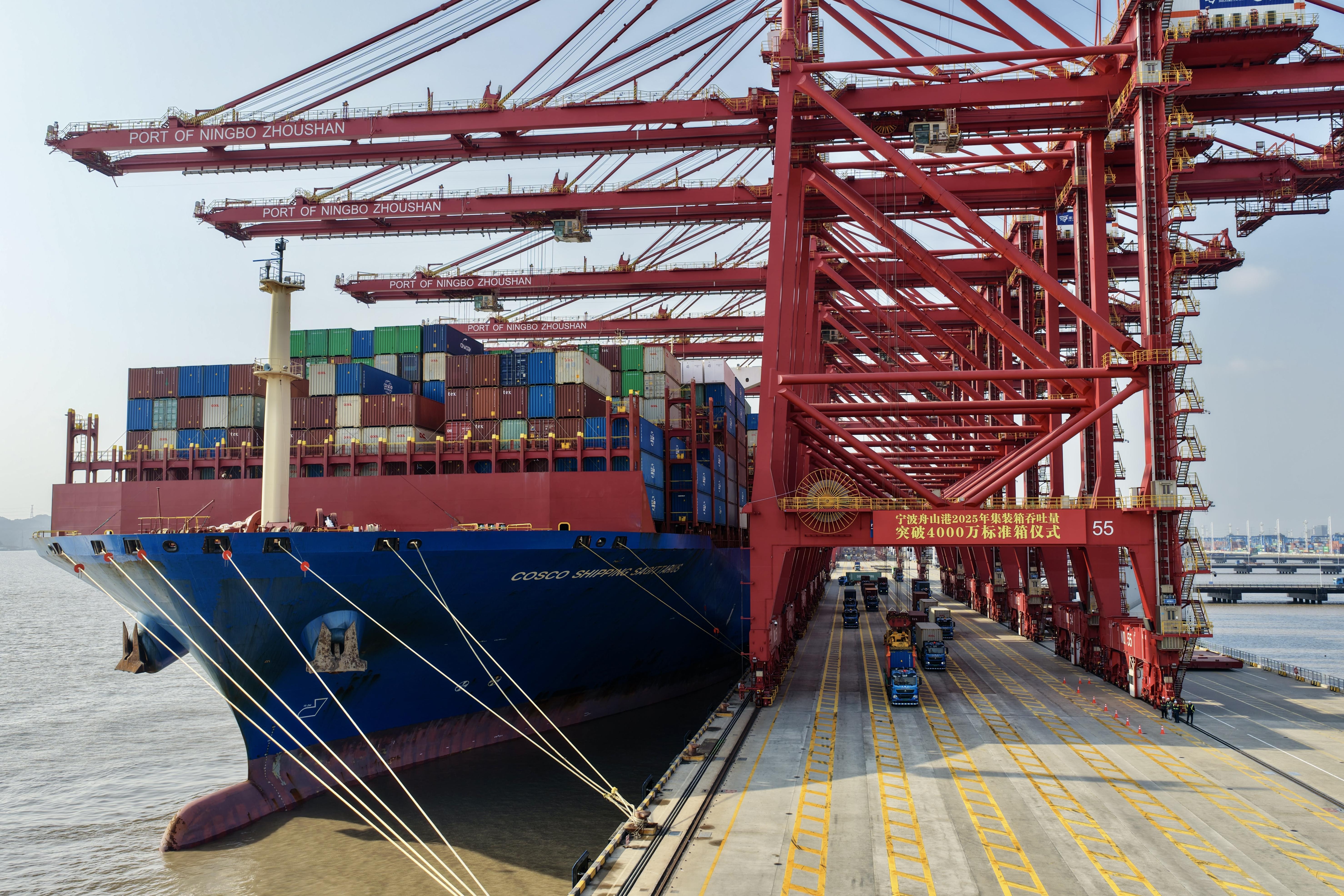 12月2日,宁波舟山港年集装箱吞吐量首次突破4000万标准箱,成为世界第三个突破4000万大关的港口,为中国制造出海再添硬核支撑。