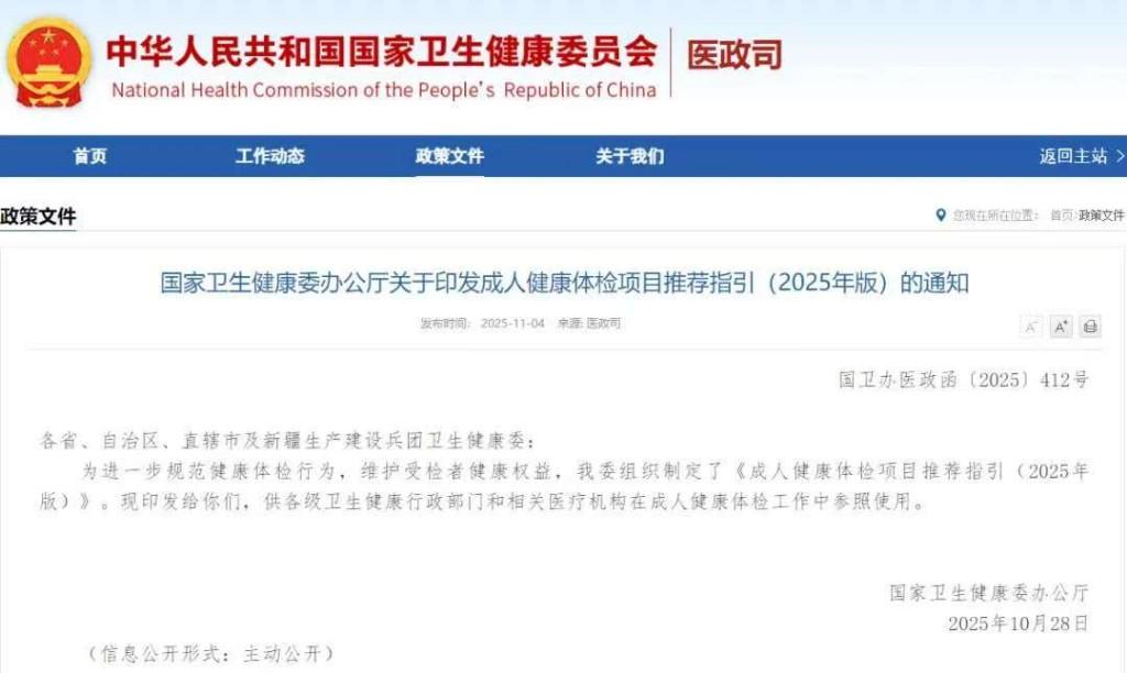 日前,国家卫生健康委员会正式发布《成人健康体检项目推荐指引(2025年版)》(以下简称《指引》),明确《成人健康体检工作流程图(2025年版)》,并要求体检机构在设置健康体检项目时,可结合受检者健康服务需求及本机构技术人员专业结构、医疗设备配置情况等,对体检项目进行合理调整。