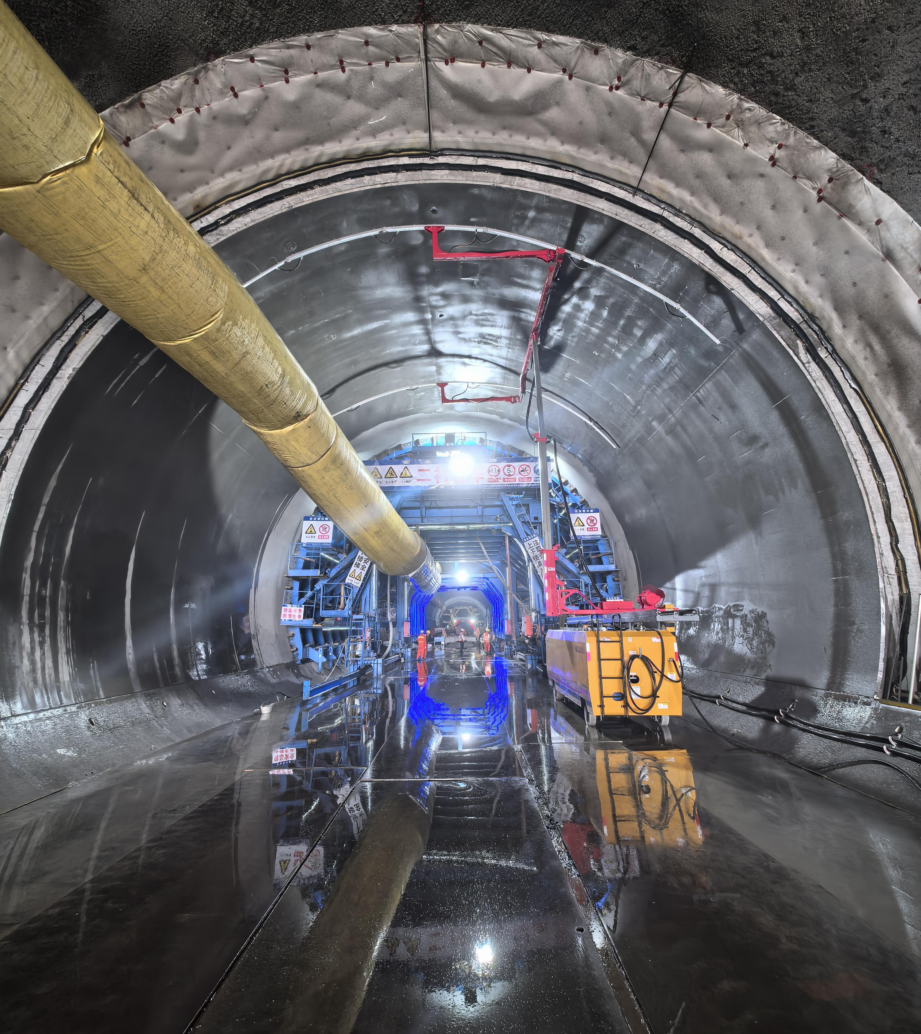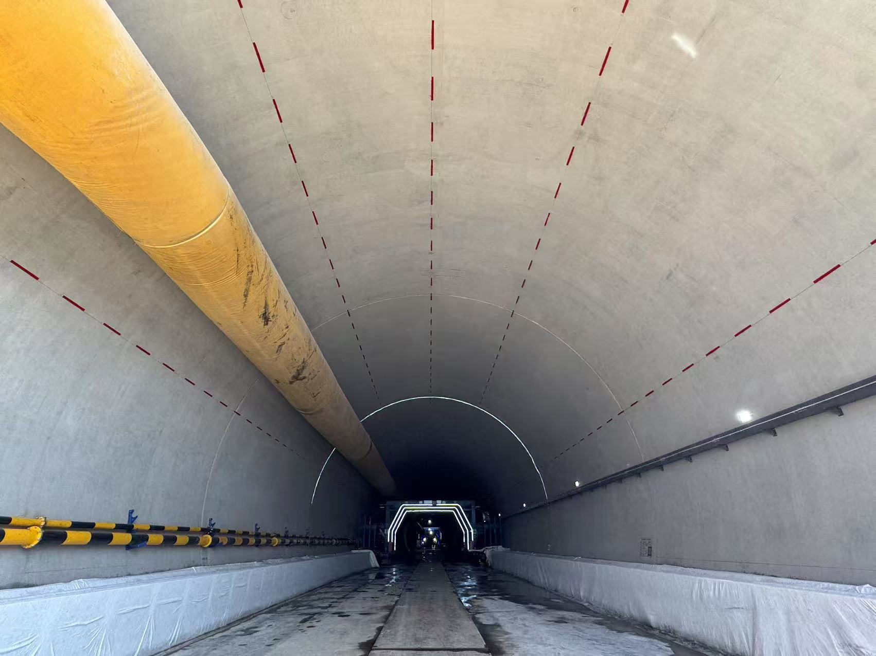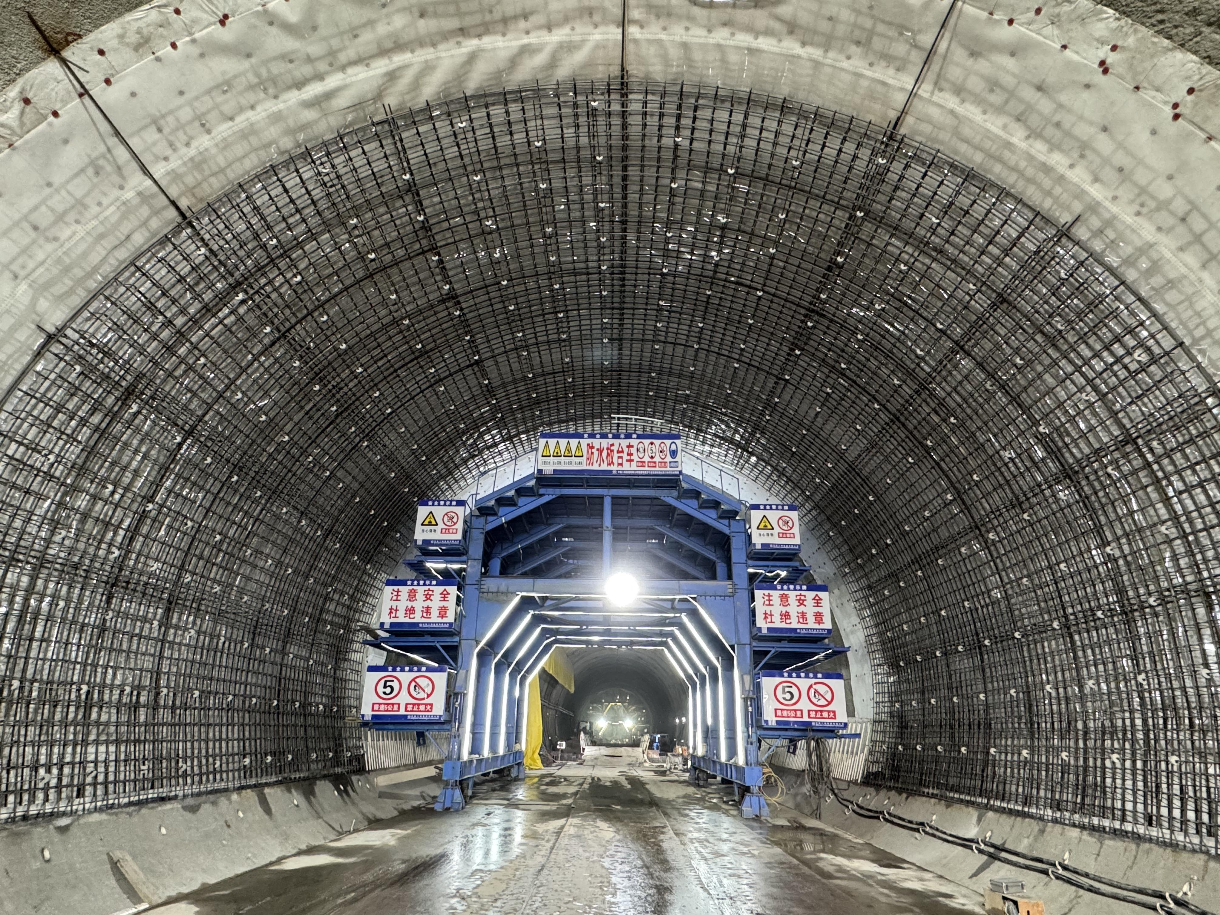 为攻克施工难题,项目团队推行网格化、穿透式管理,强化科技创新引领。通过引入自行式仰拱栈桥、智能二衬台车、拱架台车等大型机械设备,落实“预报超前、方案严控、监测反馈、及时优化”管控机制,采用物探、钻探与机械开挖相结合,并实施24小时自动监控量测,有效化解不良地质风险。同时,严格控制施工工艺,提升混凝土抗裂防渗性能;采用高分子防水材料,并沿隧道横向、纵向和环向布设排水管道,确保渗水顺利排出,全面提升施工效率和工程质量。
