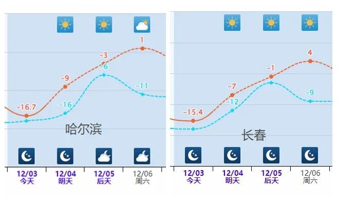 像是哈尔滨、长春,今天最高气温在-15℃左右,明天开始气温一路上扬,6日最高气温将分别达到1℃、4℃,大跨步式上升。石家庄、西安、济南、郑州6日最高气温也能回到15℃或以上,寒意明显减弱。