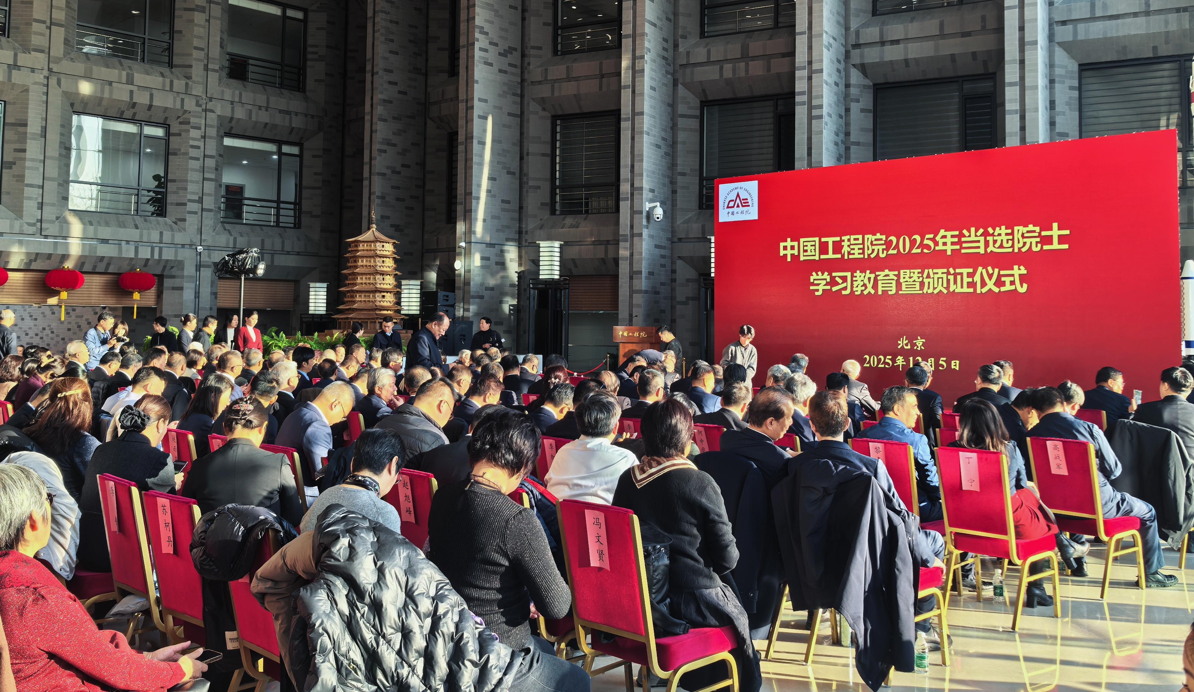 12月5日,阳光铺满中国工程院一楼大厅时,身着正装的人们陆续赶来,共赴一个庄重的时刻。9点整,中国工程院2025年当选院士学习教育暨颁证仪式开始了。