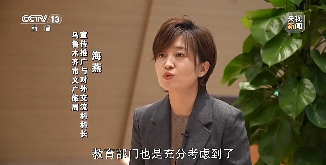 乌鲁木齐市文广旅局宣传推广与对外交流科科长 海燕:教育部门也是充分考虑到了青少年整个学期的教学计划不被打乱的基础上设置的,时长的设置也是能够让青少年和家长真正参与到冰雪活动、冰雪文化的体验当中去。