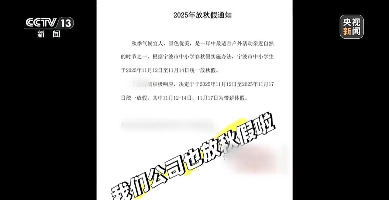 从已探索20多年的杭州,到新近加入探索的城市,春秋假制度都处于提质升级的关键期,比如在用人单位的带薪休假制度上,就应该实现突破。记者注意到,宁波的一家公司,就在今年学生秋假期间,给员工也放了秋假,并特别强调是带薪休假。专家在调研中发现,春秋假恰恰是落实带薪休假的机会。前不久发布的十五五规划建议,也明确提出,落实带薪错峰休假。