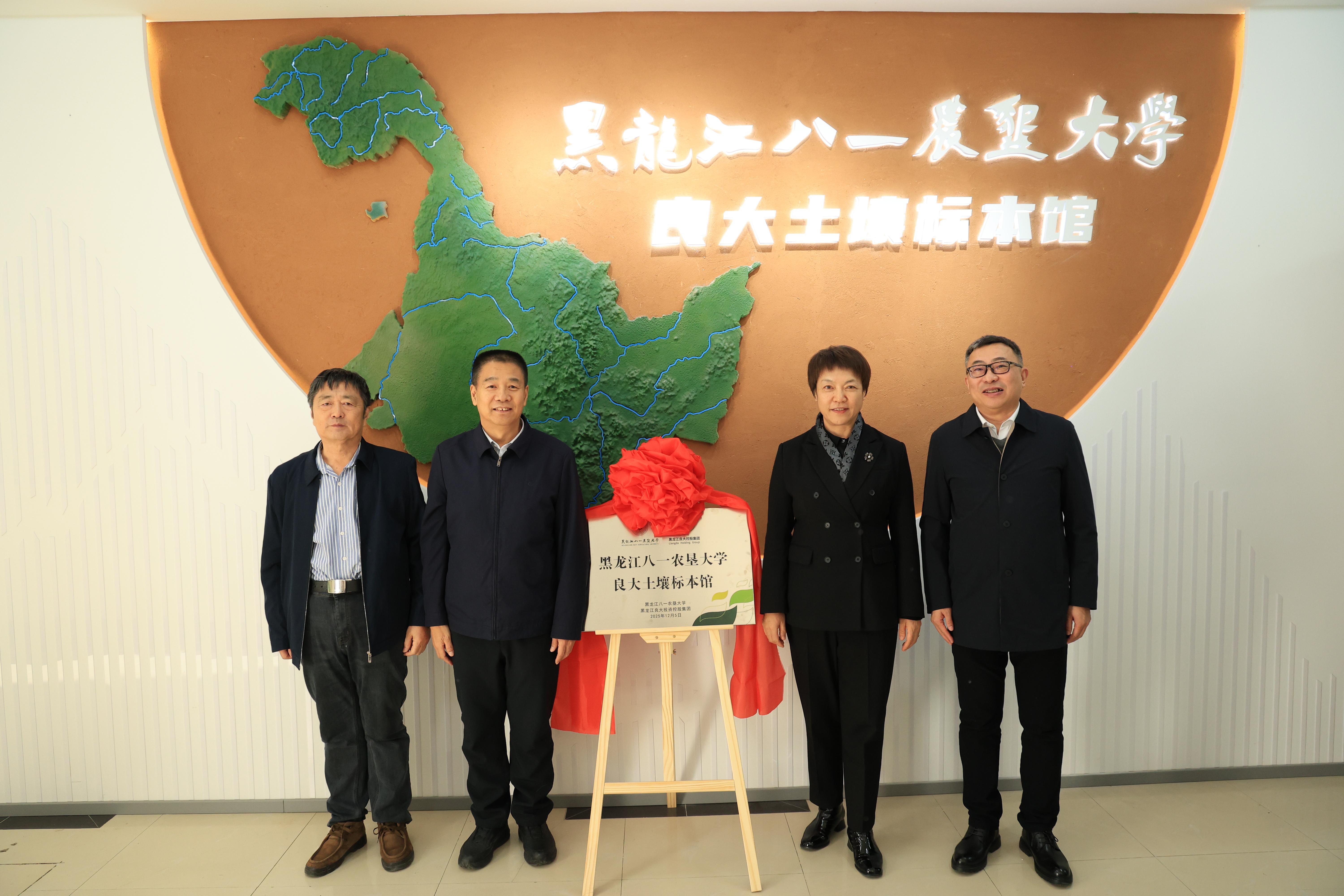 活动中,校企双方领导共同为“黑龙江八一农垦大学良大土壤标本馆”揭牌。这标志着黑龙江省首个集教学科研、科普宣传、社会服务、文化传承于一体的智能化、生态化、标准化土壤标本馆、首个黑土地战略性基础资源平台正式启用。