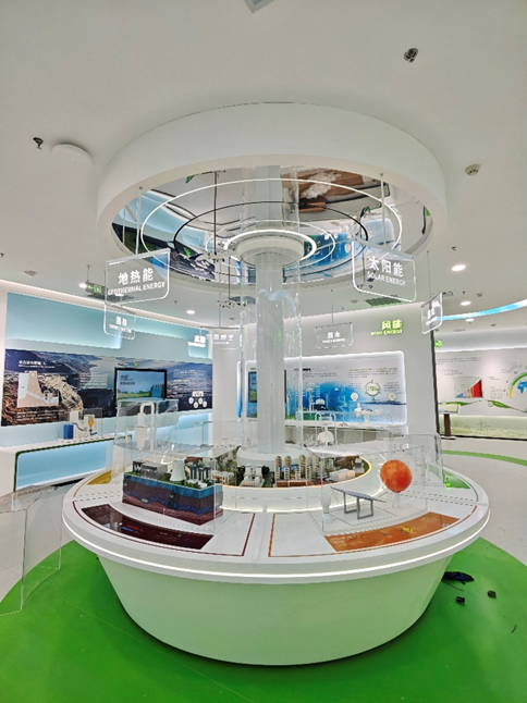 作为联合国教科文组织(UNESCO)科学十年“绿碳计划”中科学教育的核心载体,清洁能源与绿碳技术科普中心依托青岛能源所/山东能源研究院建设。中心建筑面积达820平方米,围绕“能源演变”“绿色脉动”“低碳生活”“探索未来”四大主题板块,构建起历史、前沿、应用、展望的完整知识体系。展区内不仅展示了专业科普内容,还设置各类新能源、储能、低碳生活等模拟互动装置,将清洁能源转化利用、碳循环原理等复杂的科学知识与前沿技术转化为可感可知的体验项目,使公众在互动体验中深入了解清洁能源与绿碳技术的奥秘。