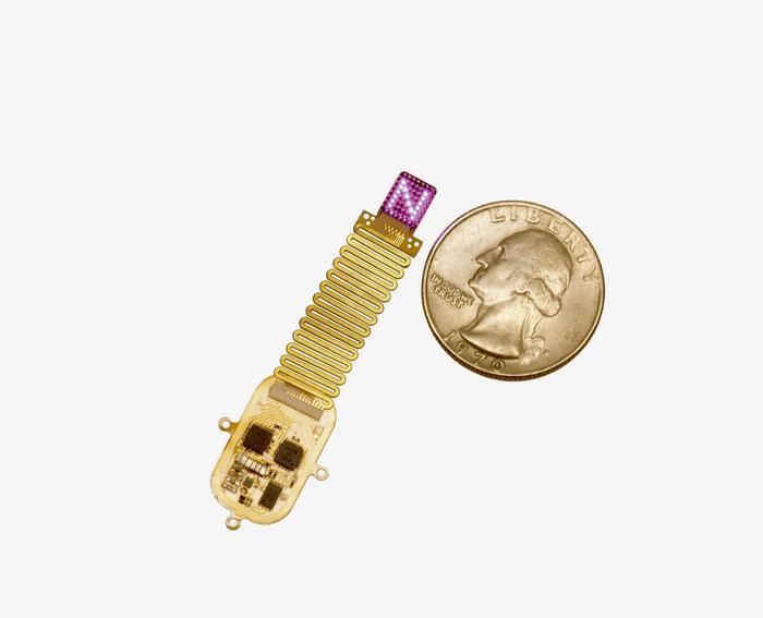 这一微型设备柔软且具有弹性,能够植入头皮下方,紧贴头骨表面,通过骨骼发送精确控制的光模式,从而绕过人体自然的感觉通路,直接激活大脑皮层中的特定神经元群。
