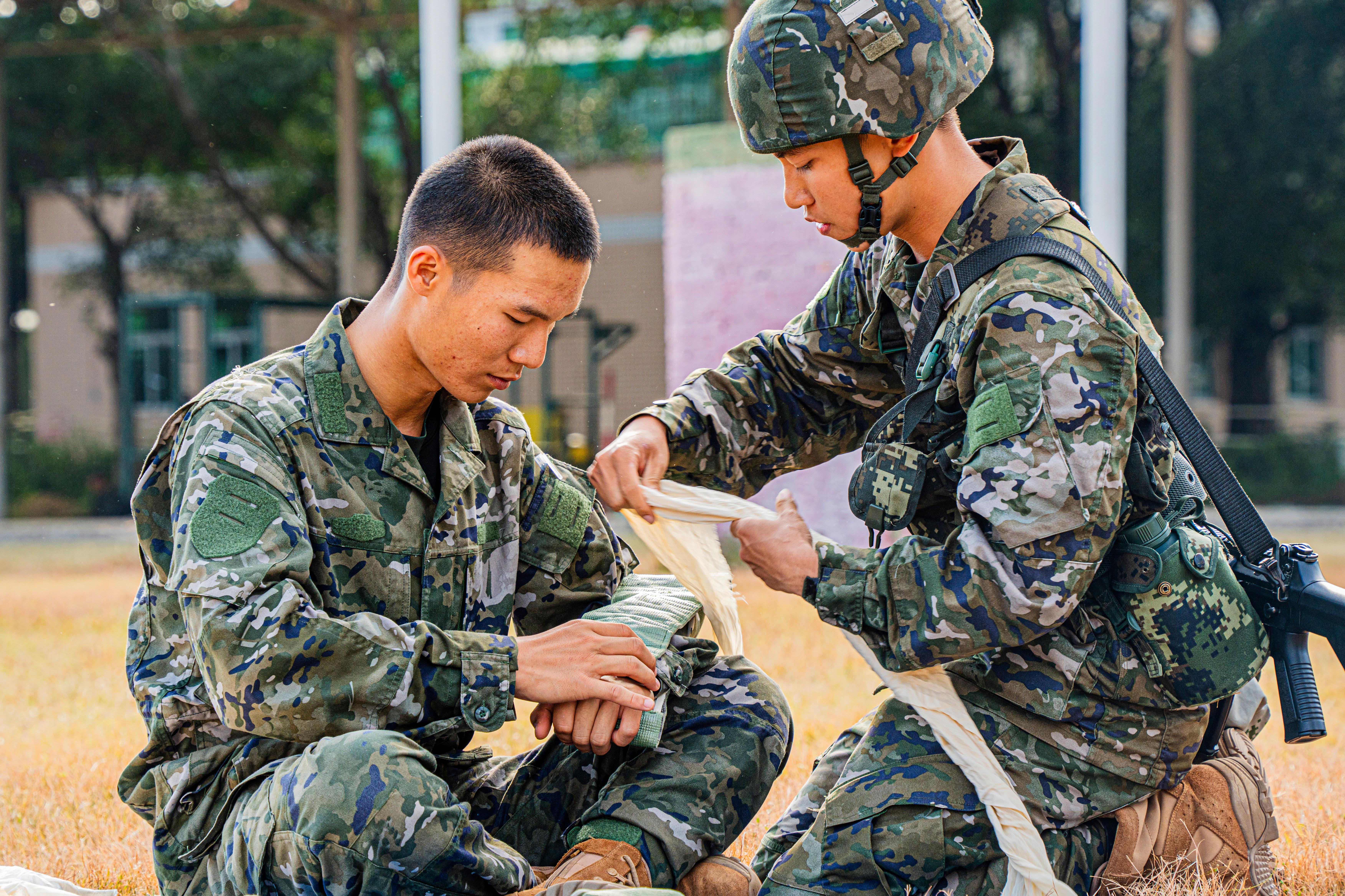 考场如战场,每一项组合课目都是对实战的逼真预演。“向右看——正步走!”军姿挺拔、步伐整齐,展现的是令行禁止的纪律根基;“突刺——刺!”刺杀场上,凛凛刺刀寒光闪耀,彰显着近战胆魄的传承;自救互救阶段,新兵们迅速利用掩体,为“伤员”进行止血、包扎、固定,锤炼的不仅是个人的救护技能,更是危局中的团队信任与战场责任感……组合考核的模式,有效激发出他们在压力下的技能转换与精准操作潜能。