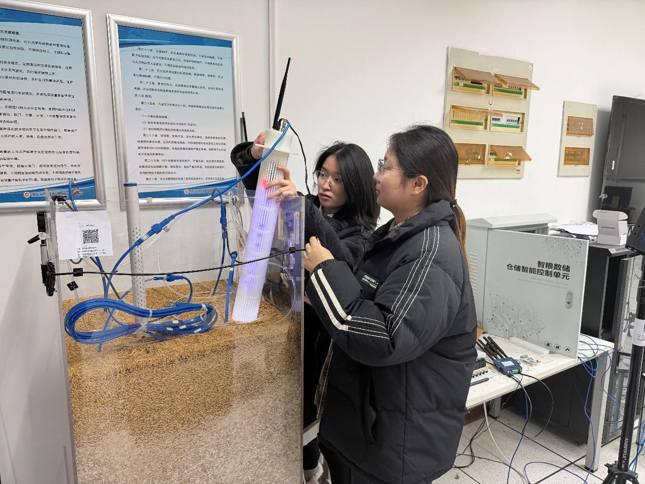 “在智能监测技术长期依赖进口的背景下,‘智探粮芯’实现了关键硬件的自主可控。”团队成员、南财计算机与人工智能学院计算机2402班黄微介绍说,系统核心设备——自研多模态智能探杆,集成温湿度、水分、气体浓度与虫害图像识别等“五合一”功能,成本仅为进口设备的约1/5,却能覆盖更多的监测维度,实现更长时间的在线运行。