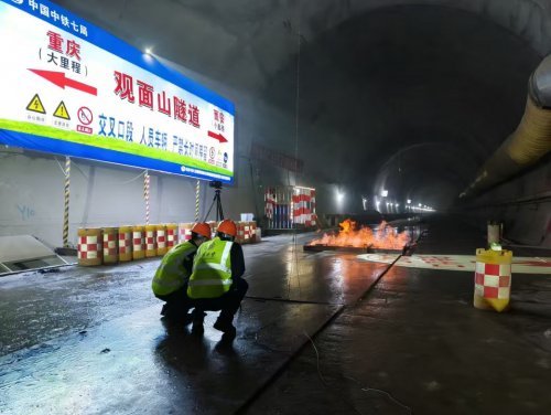 作为西渝高铁全线“咽喉”工程,观面山隧道全长逾12.8公里,最大埋深达700米,地质条件异常复杂。隧道内Ⅳ、Ⅴ级不良围岩占比较高,同时面临高地应力、软岩大变形等多重风险,被列为Ⅱ级高风险隧道,是我国中西部艰险山区长大隧道的典型代表。选择在此开展火灾实验,正是瞄准其在运营期中可能面临的实际安全挑战,研究成果对同类隧道具有重要的示范意义。