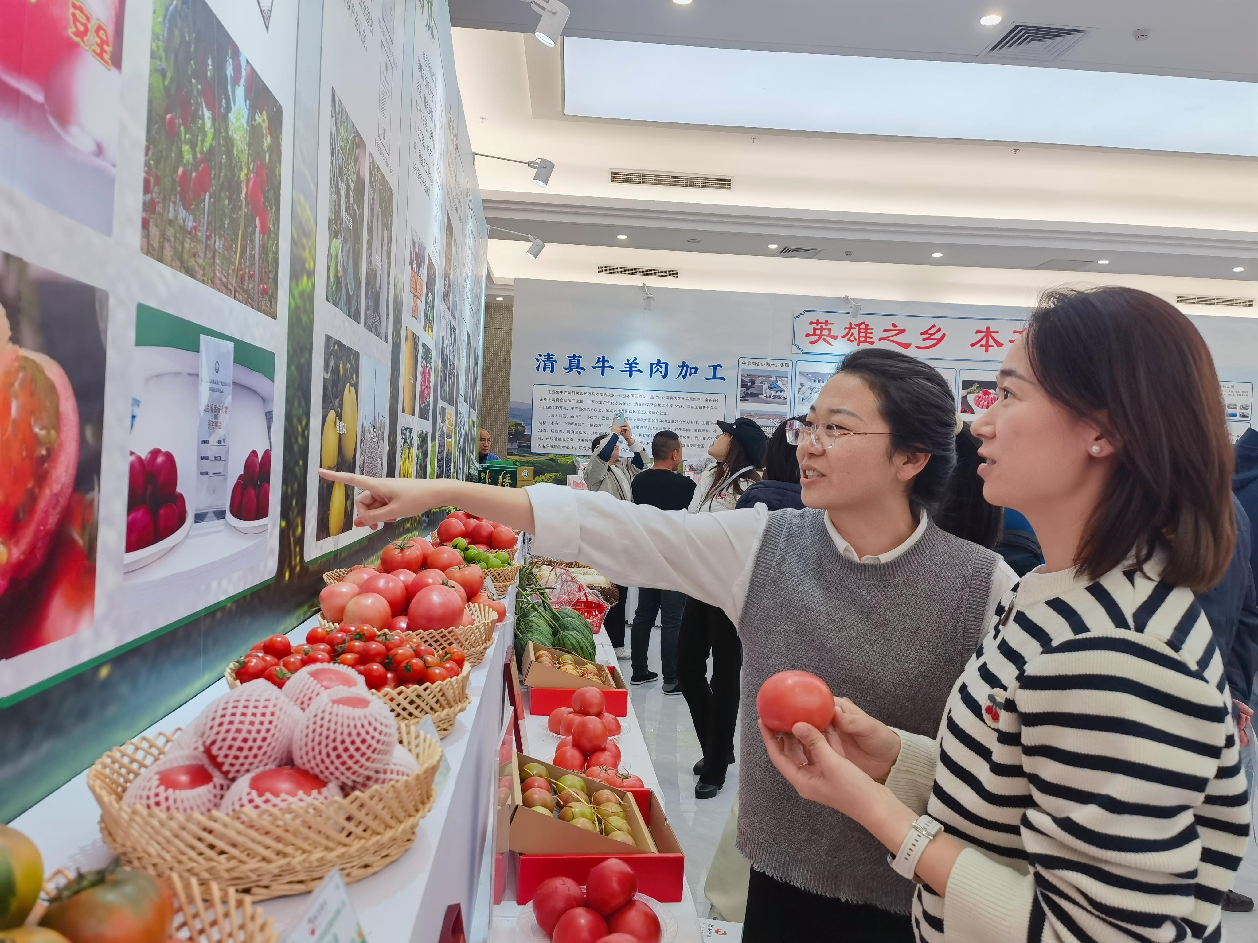 北京推介会现场,色泽鲜亮的番茄、香气扑鼻的金丝小枣等河北献县特产琳琅满目。采购商与市民驻足品鉴,气氛热烈。