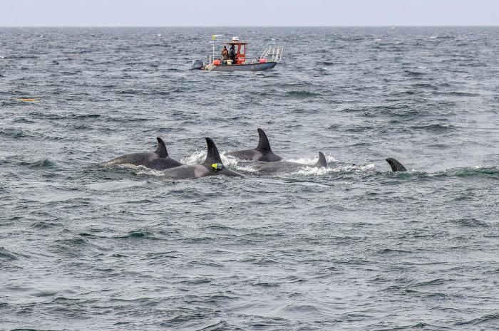 在本项研究中,论文第一作者和通讯作者、加拿大戴尔豪斯大学Sarah M. E. Fortune与合作者一起,在2020年8月的加拿大温哥华岛研究了9只北方居留虎鲸的捕食行为及其与太平洋短吻海豚的互动。他们利用移动数据、水下录像、声学录音、无人机录像绘制出这些虎鲸的移动和捕猎行为。