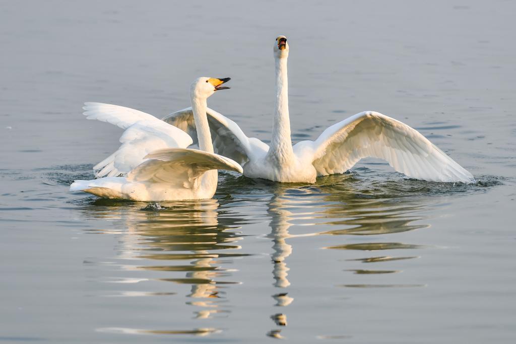 在山西平陆黄河湿地保护区,一批批来自西伯利亚的野生大天鹅陆续飞抵,开始越冬。据悉,自10月底起,大天鹅已开始分批抵达黄河湿地,进入12月后数量明显增加,目前该区域观测到的越冬天鹅已超5000只,到明年1、2月份可达上万只。它们悠然自得的身影,为黄河岸畔增添了一道灵动的风景线。