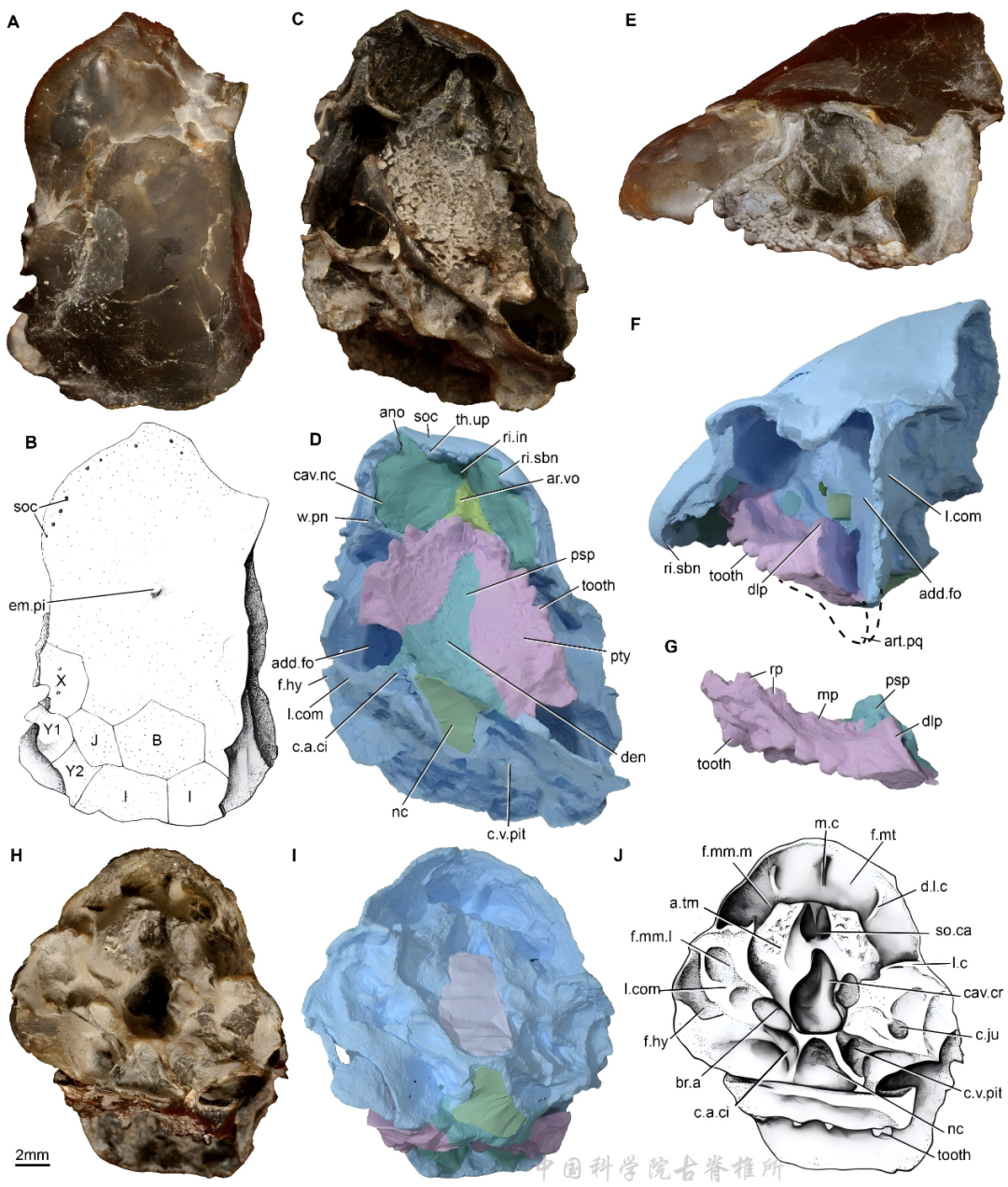 此次发现的云南古嵴鱼化石,是泥盆纪布拉格期首次发现的三维保存肺鱼头骨化石,头骨仅长25毫米,却蕴含丰富演化信息。借助高精度CT扫描技术,研究团队观察到其独特特征,它既保留希望奇异鱼的原始特征,又具备北美进步肺鱼的相似腭骨形态,鼻腔占腭面长度三分之一,脑颅两侧内收肌发达,推测以坚硬甲壳类为食。