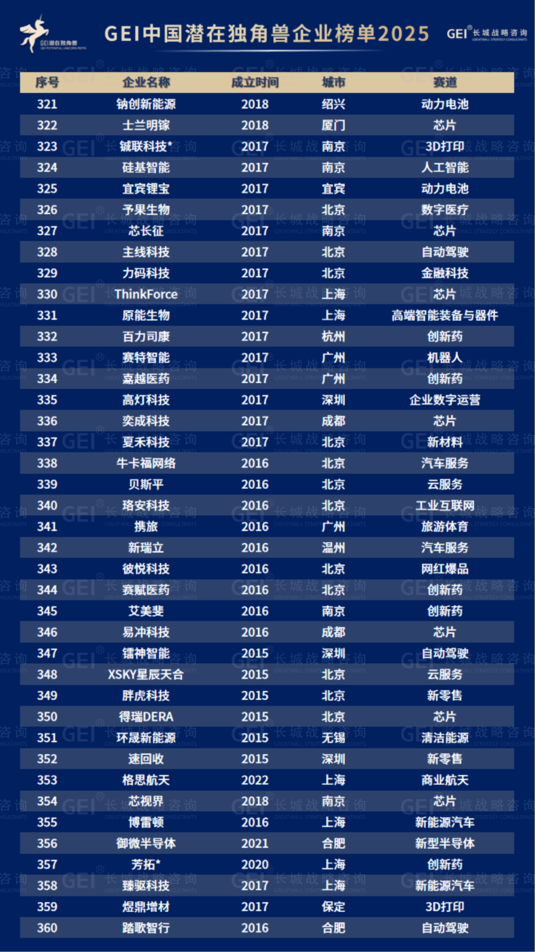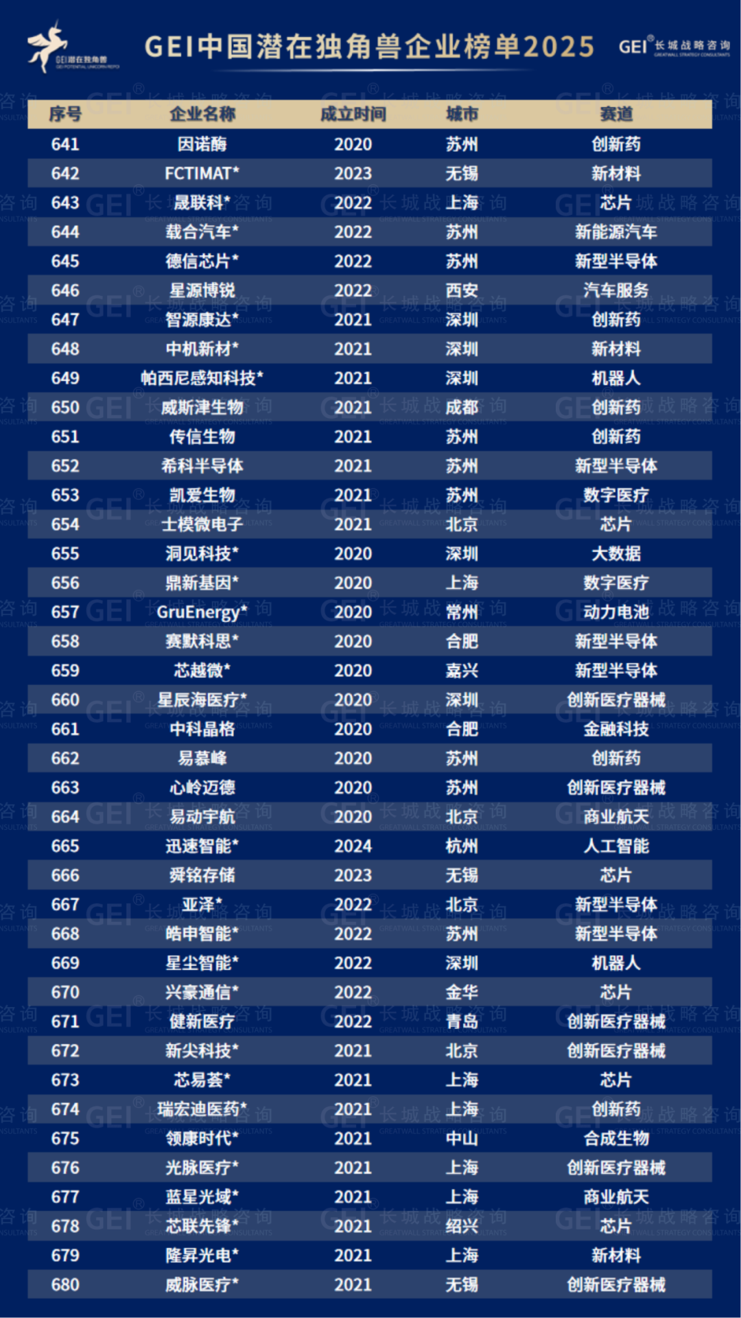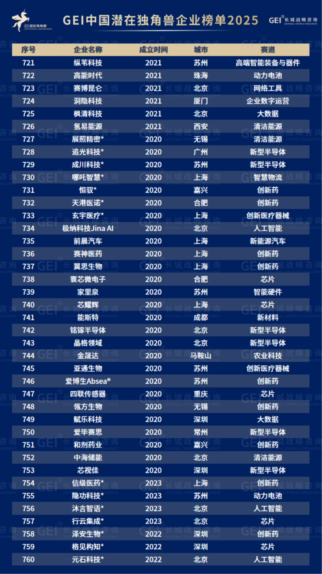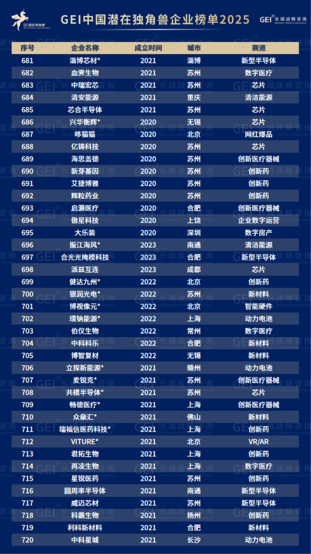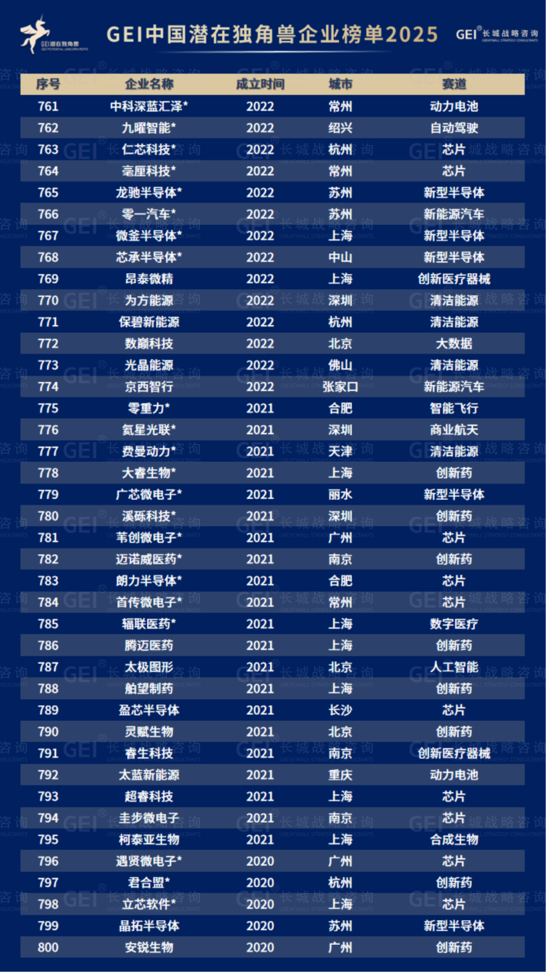 长城战略咨询是国内最早研究并发布“独角兽”榜单的智库机构,2016年起连续九年发布中国独角兽企业榜单及研究报告。2020年进一步推出潜在独角兽企业研究品牌,本次为该系列的第六期报告。