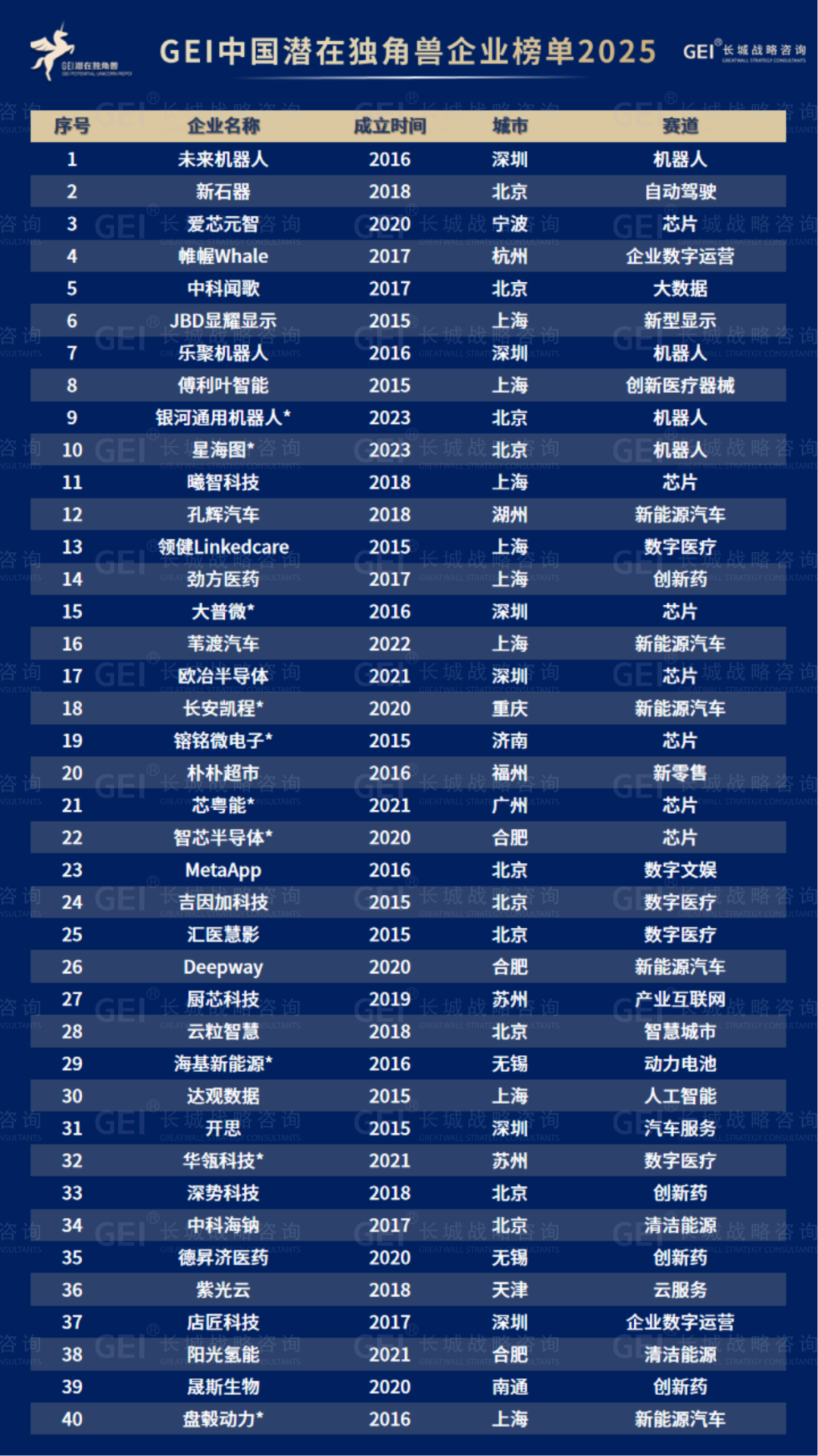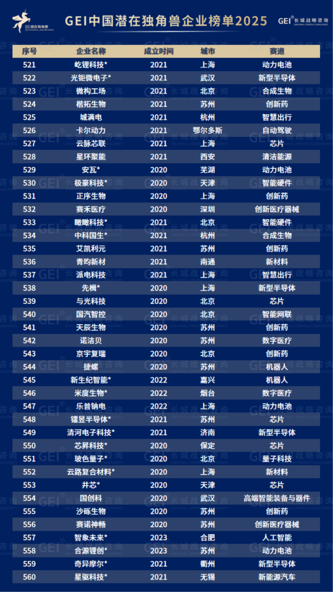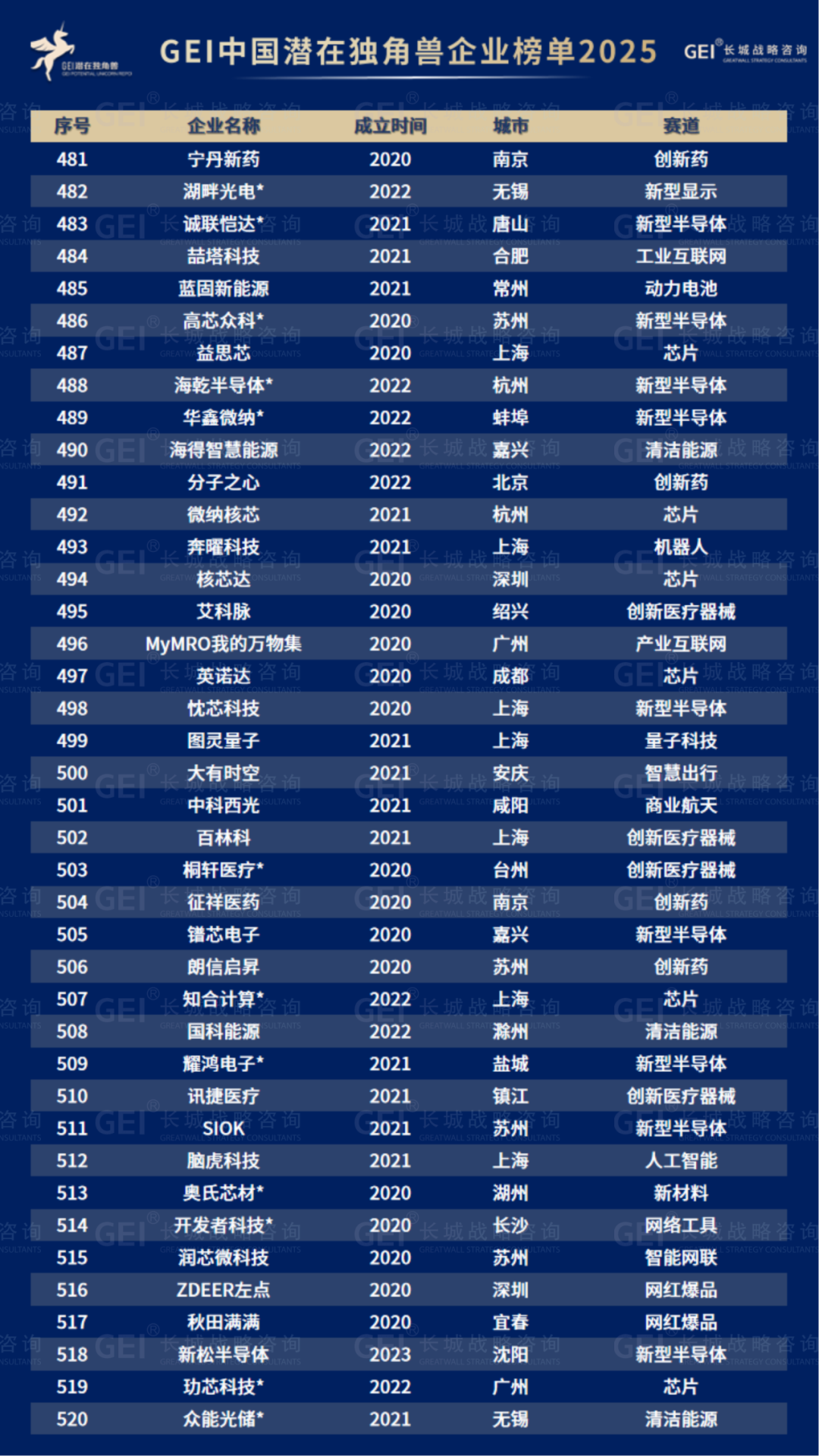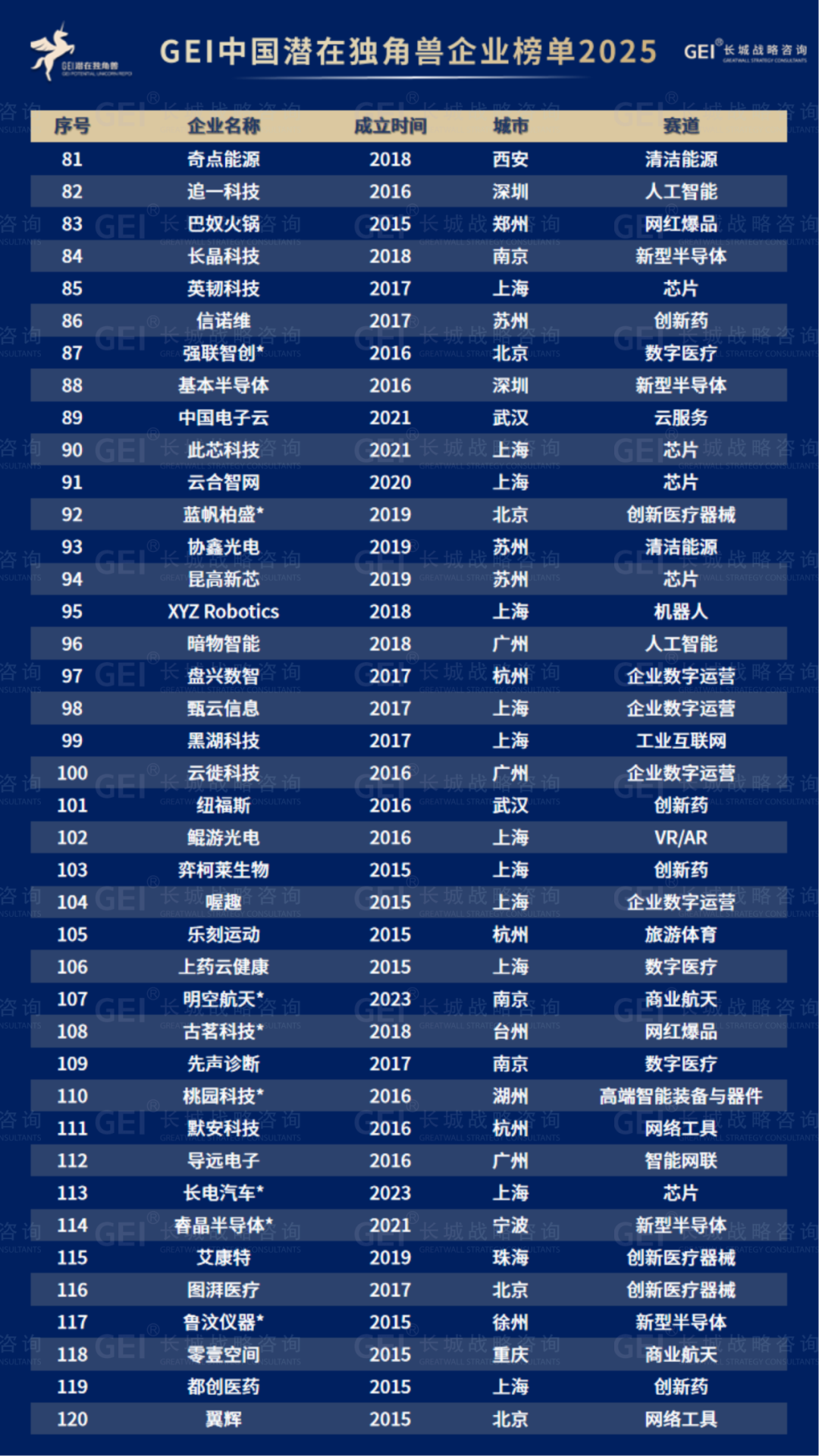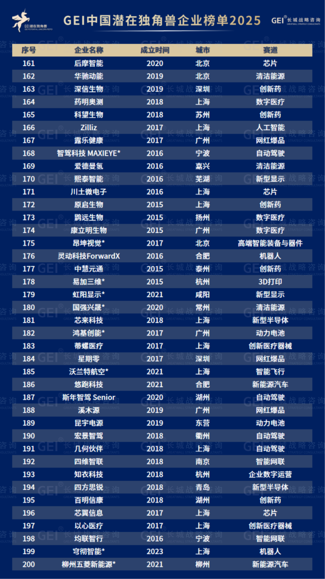 长城战略咨询是国内最早研究并发布“独角兽”榜单的智库机构,2016年起连续九年发布中国独角兽企业榜单及研究报告。2020年进一步推出潜在独角兽企业研究品牌,本次为该系列的第六期报告。